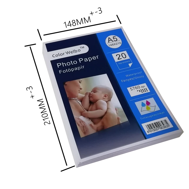 Толщина бумаги: (ошибка толщины партии существует)Упаковка: oppКол-во: 5-10 листов/упаковка4x6 5x7 148*210 мм 210*297 мм 240gsm Глянцевая полимерная Водонепроницаемая Глянцевая 4R фотобумагаЦветная фотобумага welbo изготовлена из высококачественной бумаги для древесной массы и покрытия с полимерным покрытием, а также 6 слоев покрытия. Эта глянцевая фотобумага с полимерным покрытием премиум-класса имеет специальный микропористый верхний слой для получения насыщенных чернил и мгновенного высыхания. Его вес может быть 230-240gsm, который может быть использован на различных фото-графических выходах, таких как постер, фотокнига, галерея принтов, кадрирование искусства, профессиональное фото художественное воспроизведение и элитных поп-дисплеев. Рекомендуемый Тип чернил для печати-пигментные и красящие Водные чернила, специально подходящие для печати