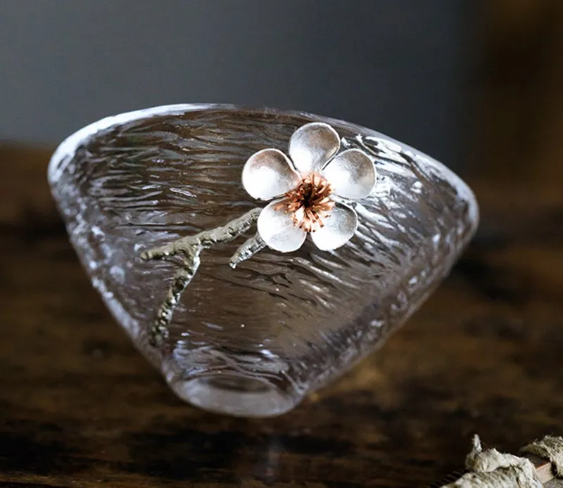 Жестяная чайная чашка с цветком сливы, креативная термостойкая Японская Чашка-мастер, прозрачный чайный набор кунг-фу, стильная маленькая чайная чашка, чайная посуда, Декор