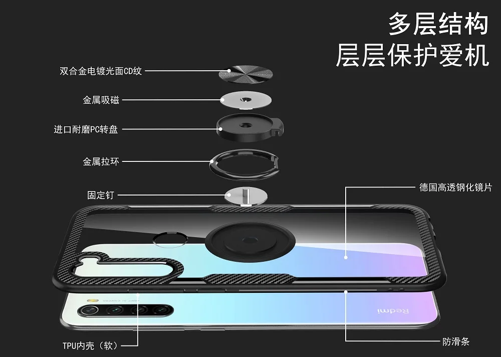 For Xiaomi Redmi Note 8T Case With Ring Stand Magnet Transparent Protective Cover case For Xiaomi Redmi 8 Note 8 Pro Case