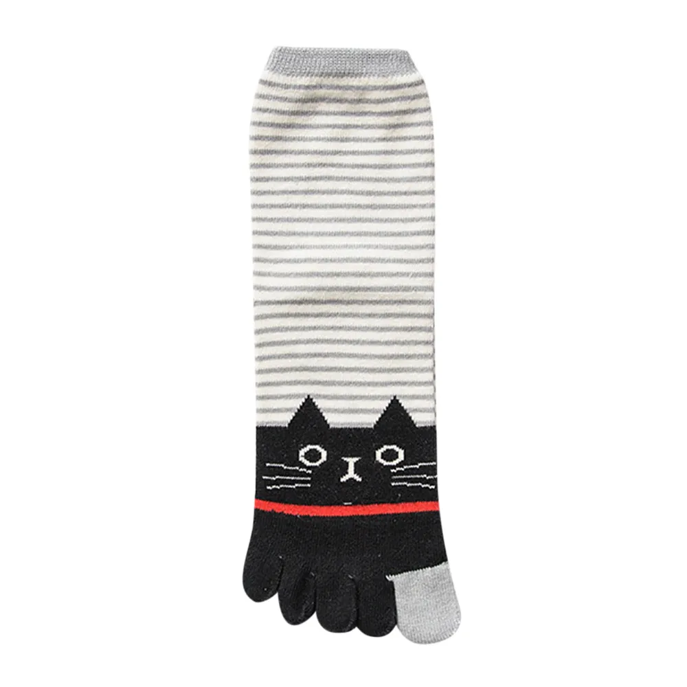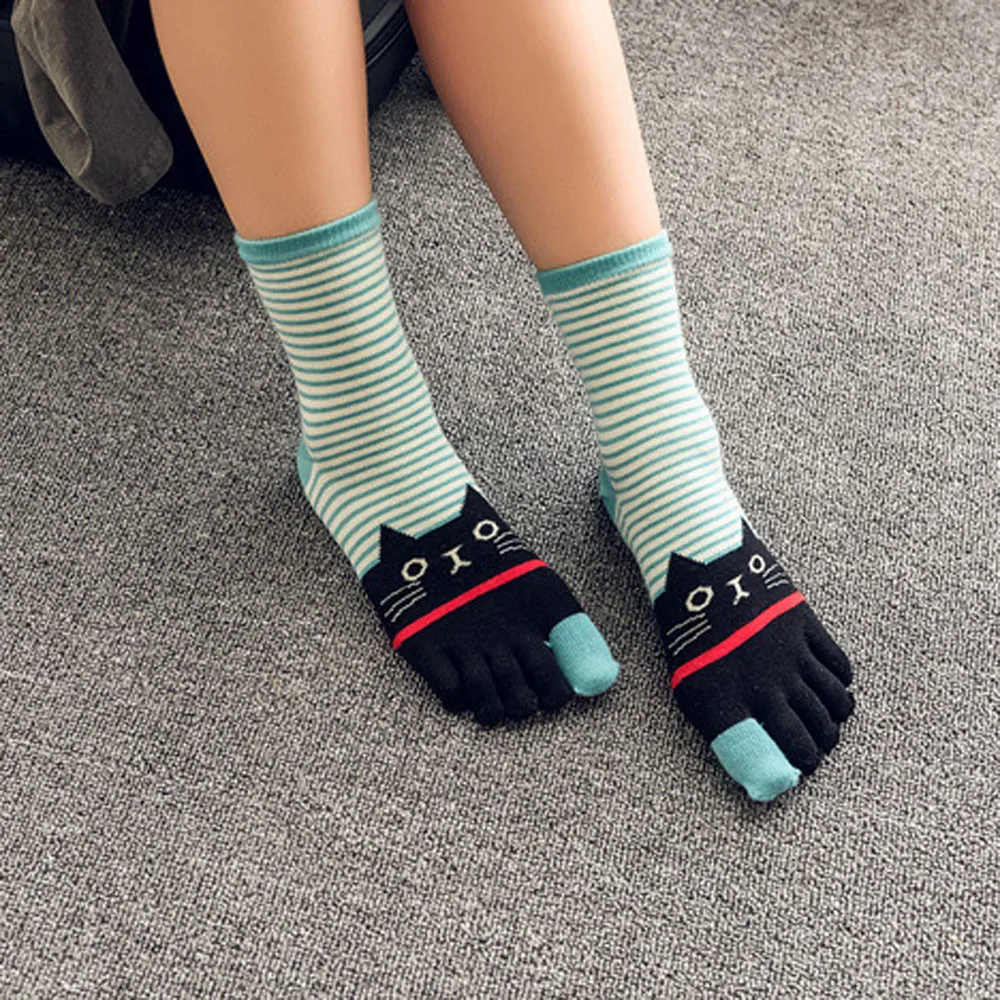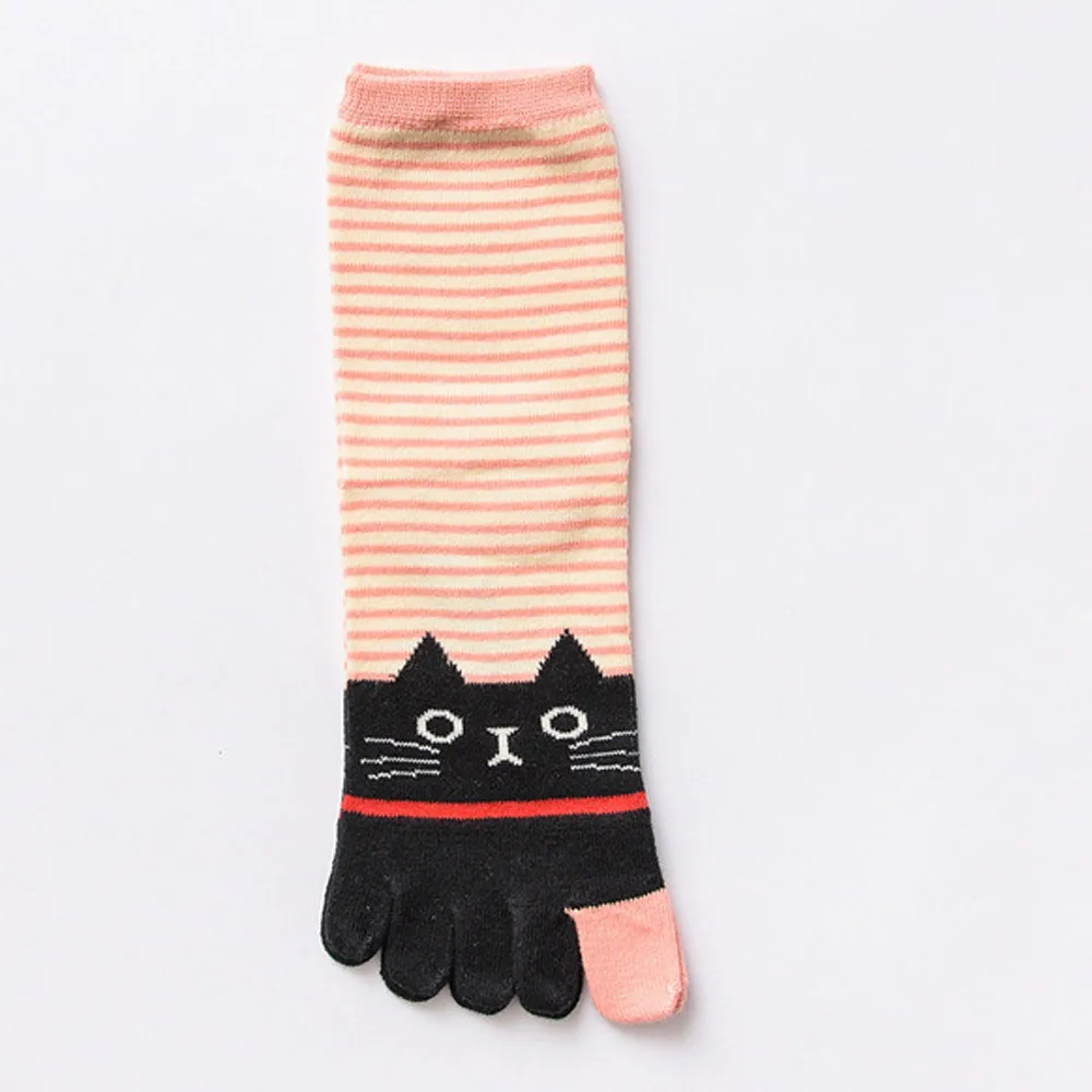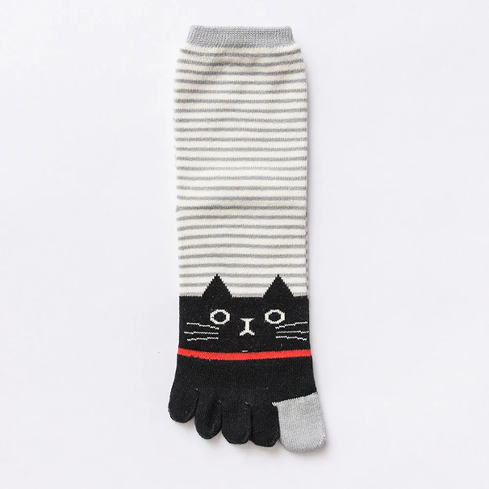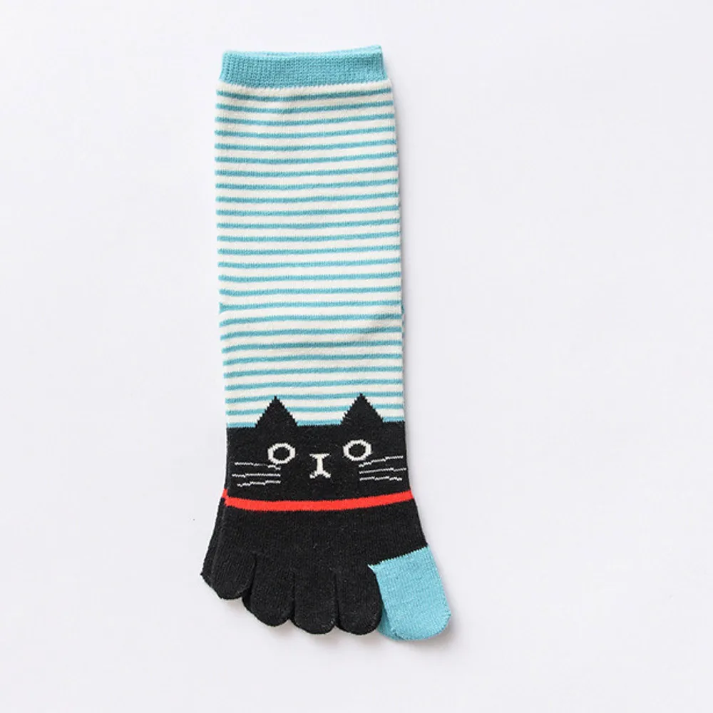 Зимние женские разноцветные носки с принтом кота для девочек носок с пятью пальцами хлопок