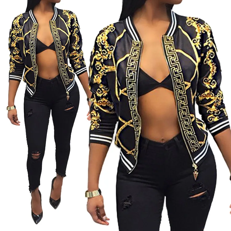 Горячая продажа цифровой позиционирования печатных с длинным рукавом куртка женская одежда тонкая куртка
