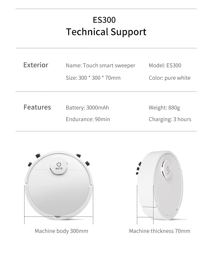 Функция продукта: запуск одним нажатием кнопки, поглощение пыли и волос, окурки для сигарет, скорлупы семян подсолнечника, автоматическое изменение направления и т. д., Встроенная литиевая батарея 3000 мА.