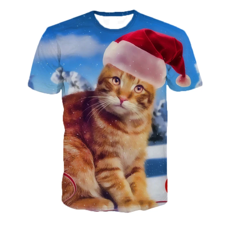 Повседневная футболка с объемным изображением кота на Рождество, забавная Рождественская футболка унисекс, Рождественская футболка большого размера, Прямая поставка
