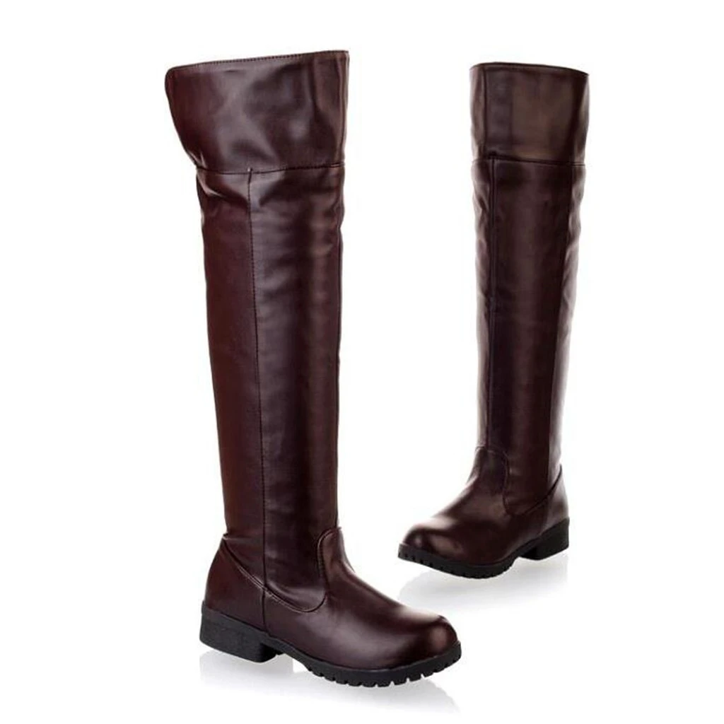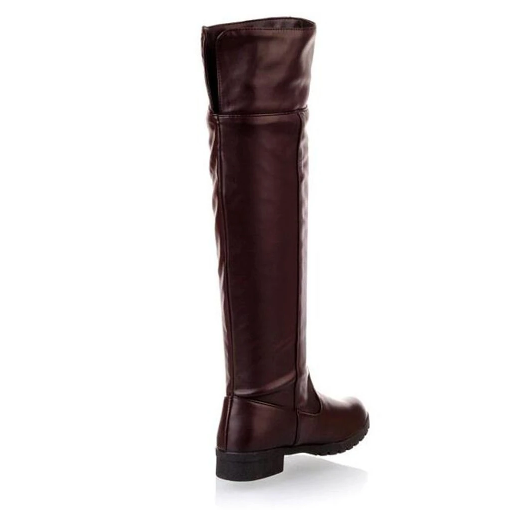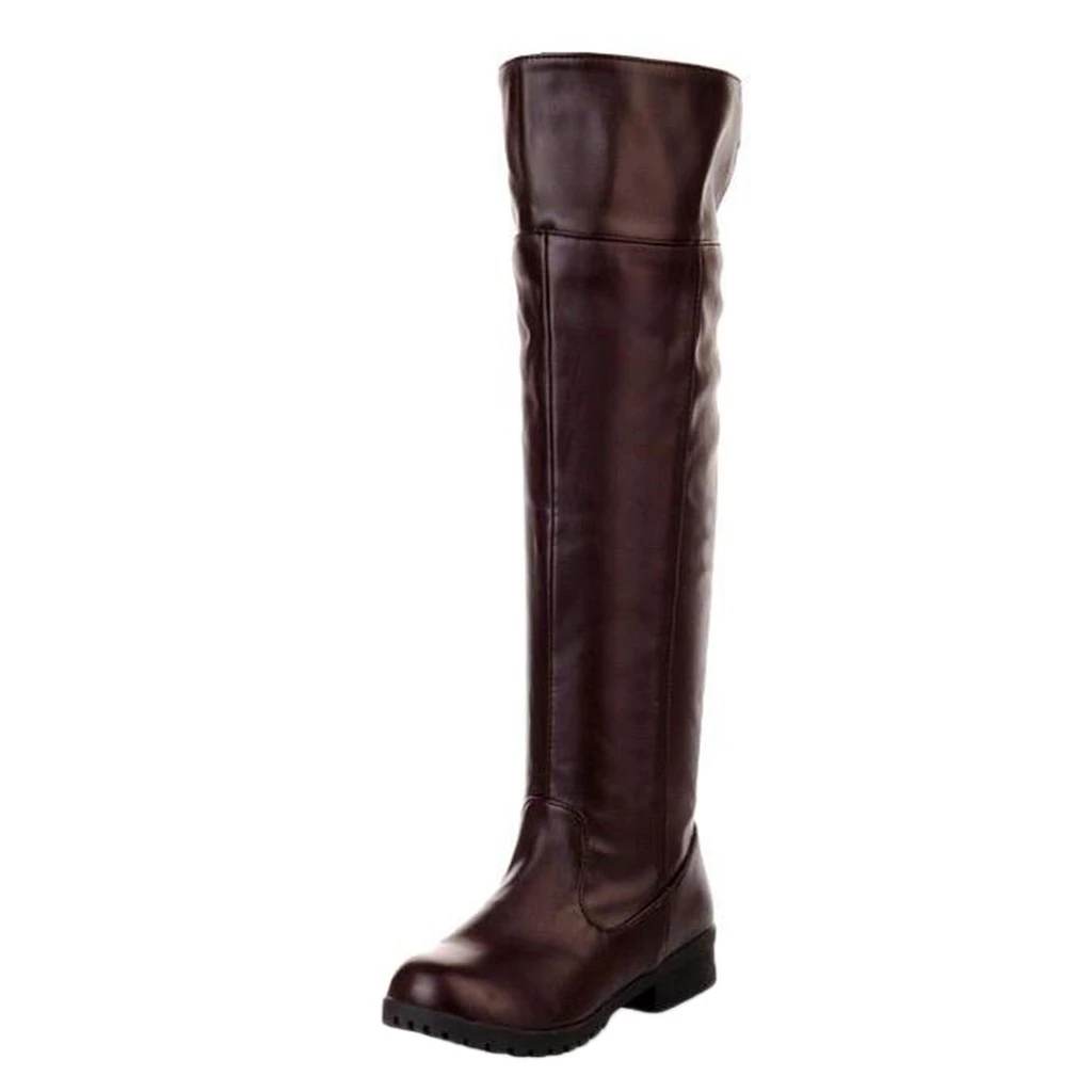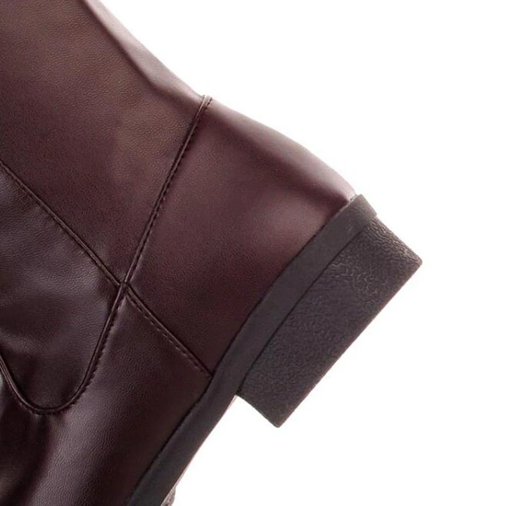 Женская обувь с резным узором на каблуке средней высоты; красивые кожаные сапоги до колена без застежки