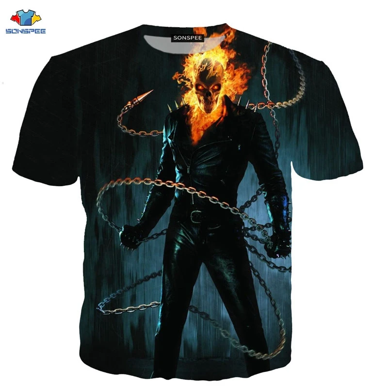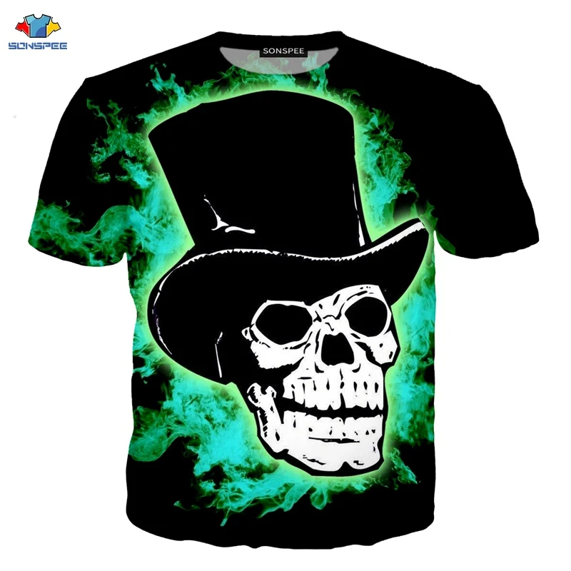 SONSPEE/Новинка, футболка с сахарным черепом, Мужская модная футболка с хвостом, пламенем, черепом, рыцаря, футболка с мексиканским цветком и черепом, футболка с 3D принтом