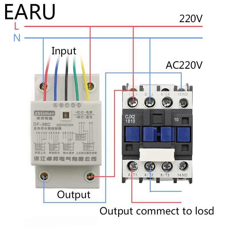 Контроль уровня пруда E-ограничитель для следующей точки, уровень воды поднимается до точки E, вода, контактирующая с зондом, контроллер уровня воды автоматически открывает насос, сливная головка для пруда; Без дренажа, точка E не подключена.