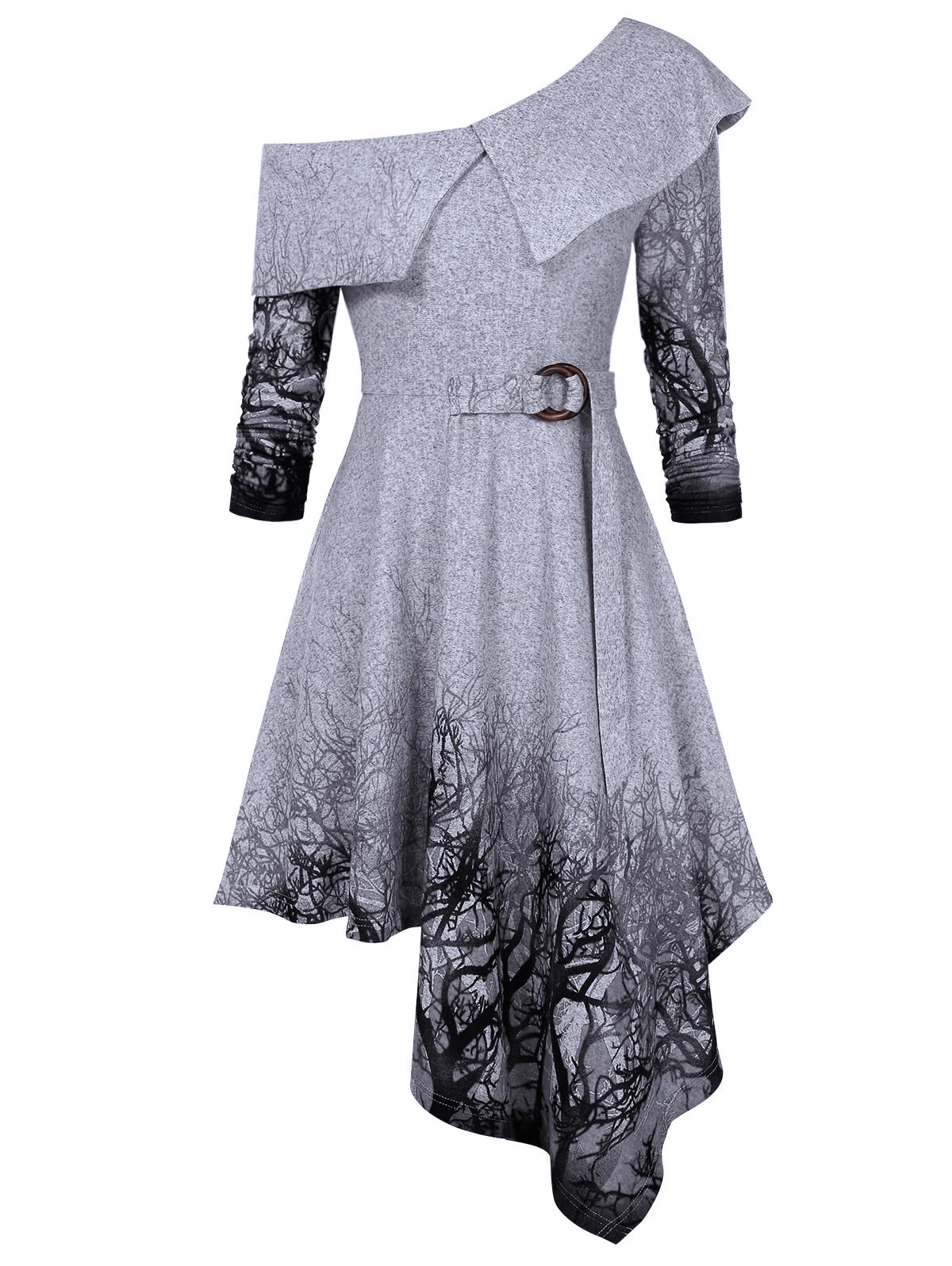 Wipalo, винтажное женское платье с поясом, элегантное, офисное, вязанное, блейзер, платья с длинным рукавом, принт с деревом, высокая талия, женские осенние вечерние платья