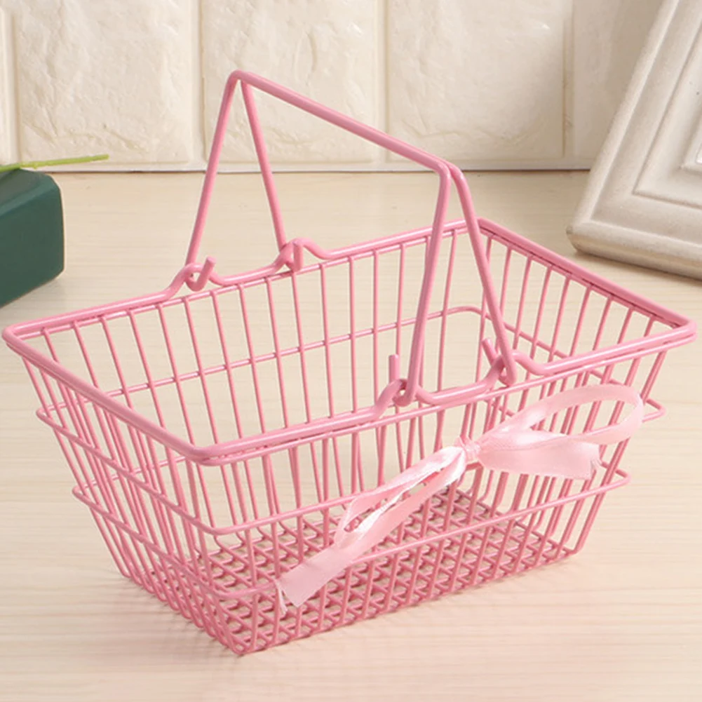 Мини-железная настольная Косметическая корзина для мелочей Органайзер с бантиком