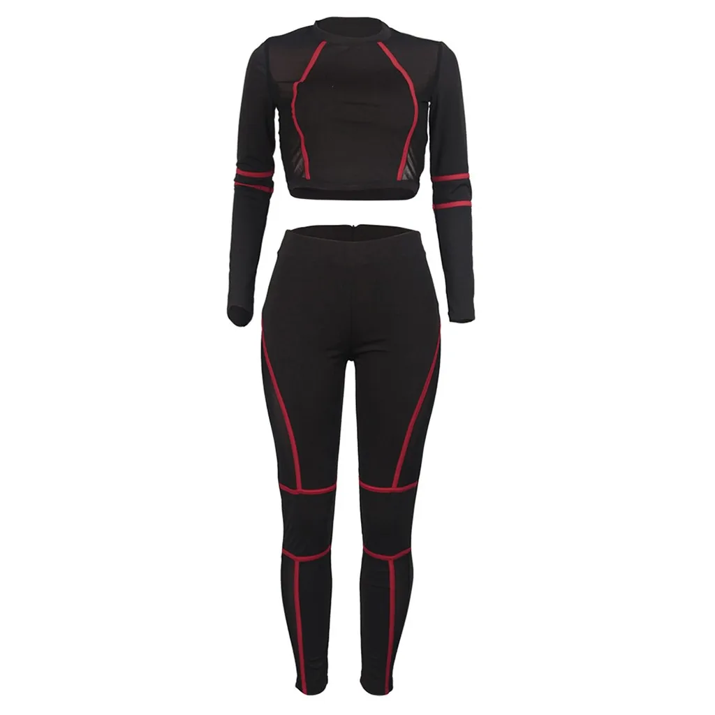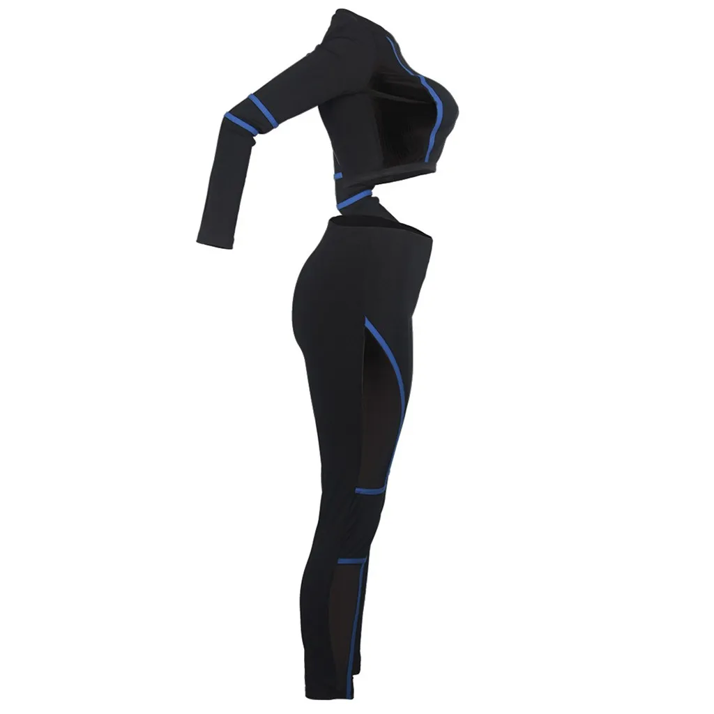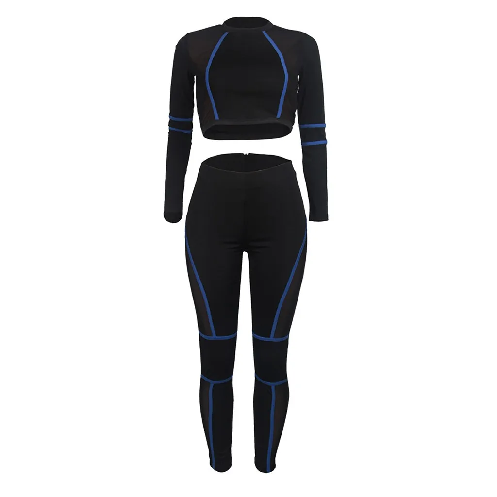 Женский сетчатый спортивный костюм с длинным рукавом и круглым вырезом