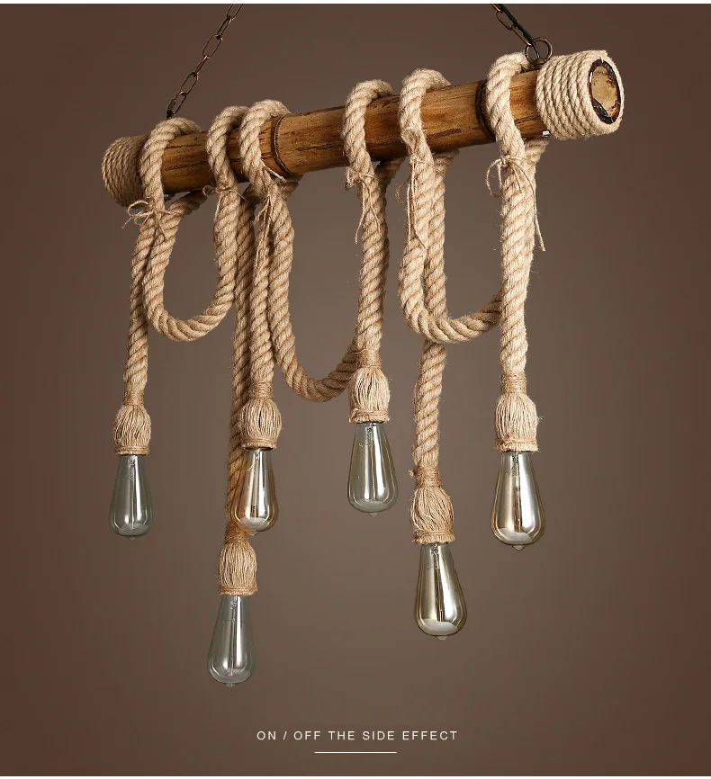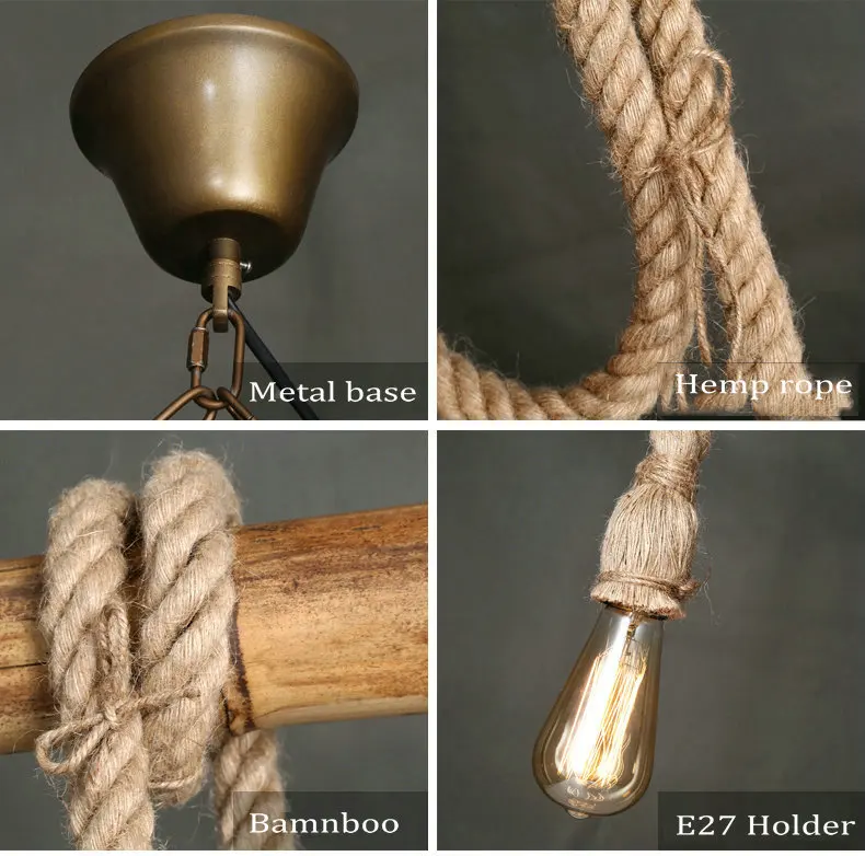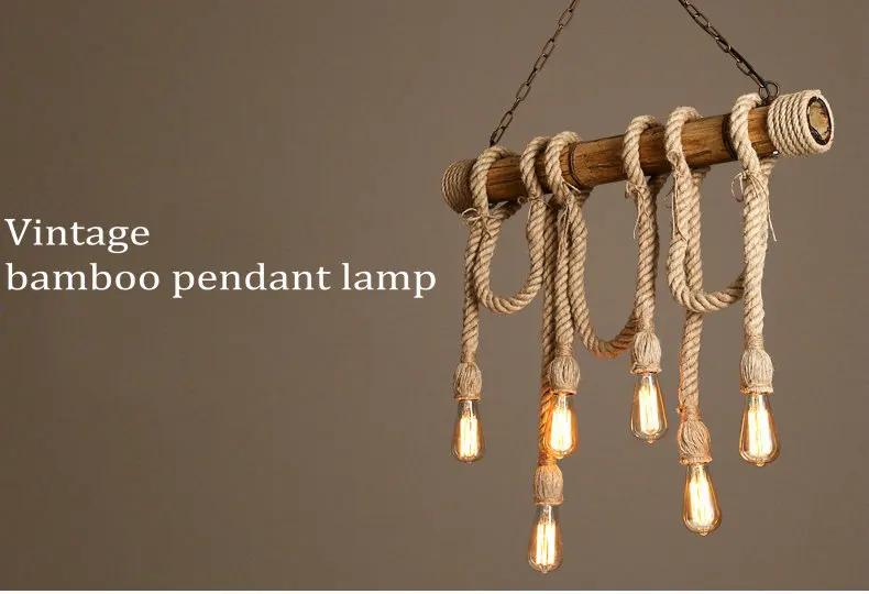 Американский деревенский винтажный бамбуковый подвесной светильник с пеньковой веревкой для ресторана, подвесной светильник E27, лампочка эдисона для бара, кофейни, светильник ing