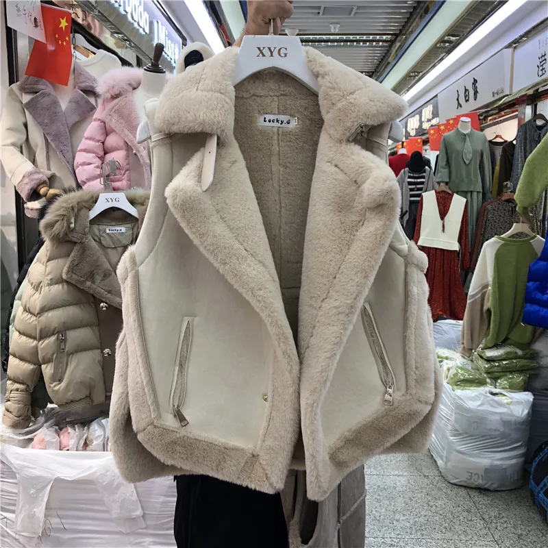 Осенне-зимний женский замшевый жилет из искусственного меха жилет из искусственной кожи на флисовой подкладке Женская мотоциклетная байкерская куртка без рукавов