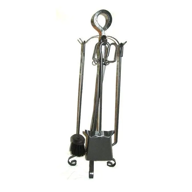 Набор кухонной утвари черного цвета с 5 элементами: подставка, лопата, щетка, покер и пинцет. Изготовлен из железа с электростатической краской. Высота стойки 65 см и инструменты длиной 46 см.