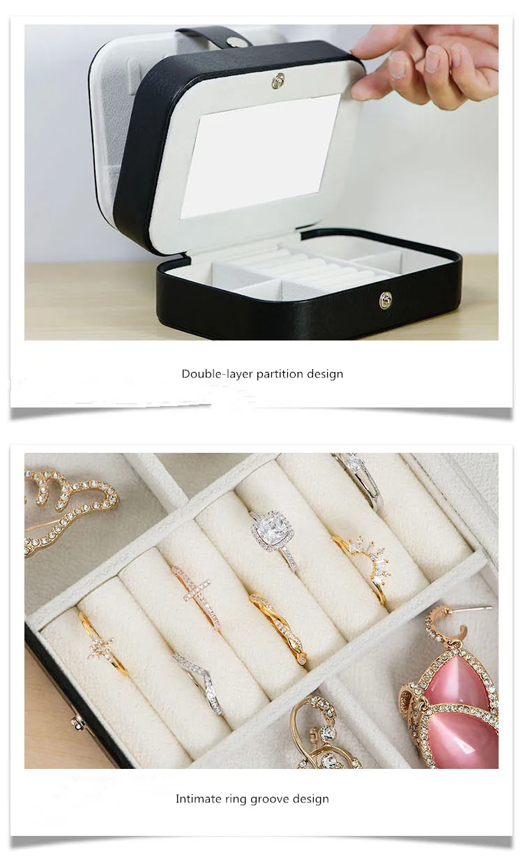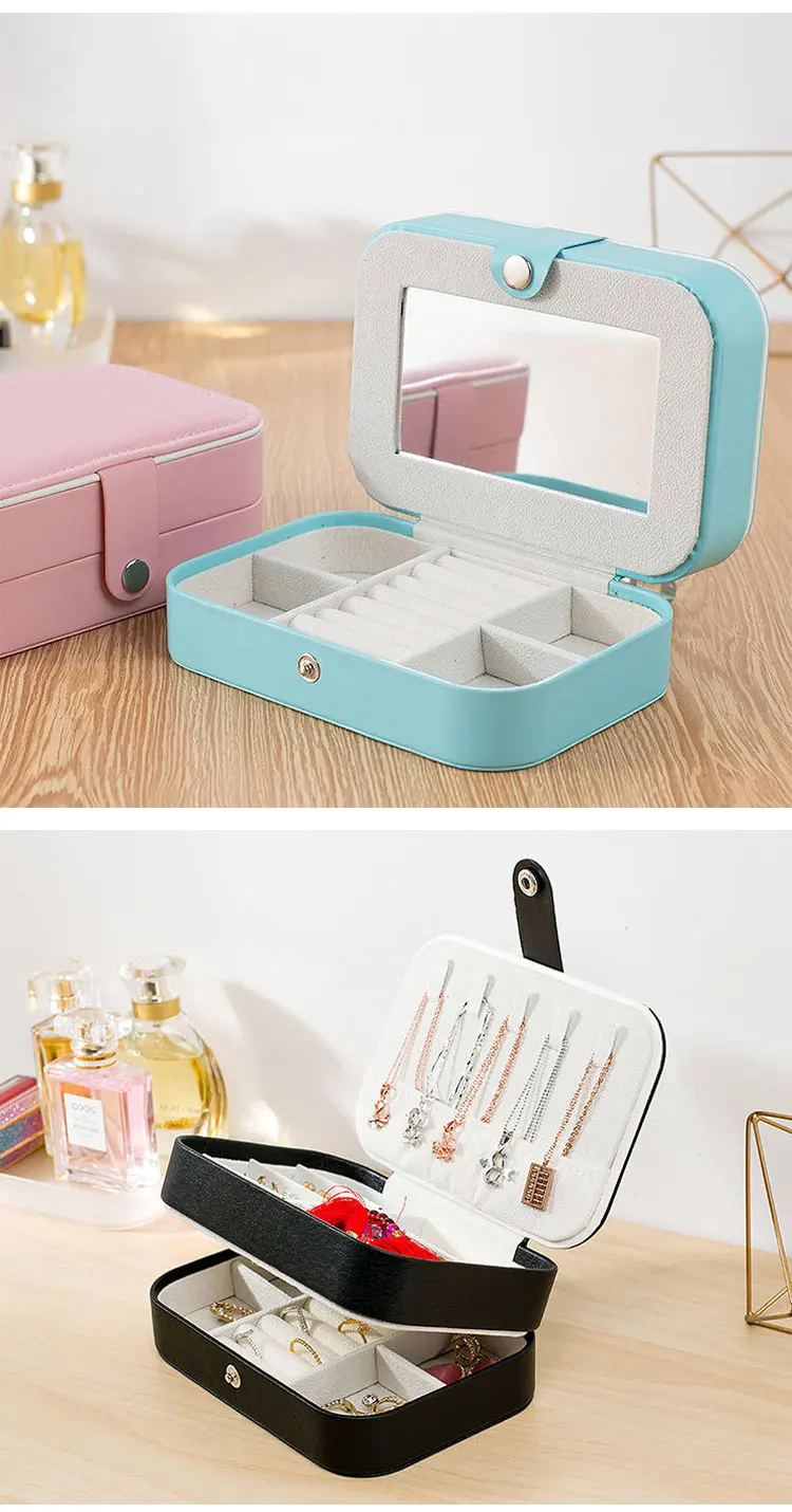 -3. Двухслойная шкатулка для хранения ювелирных изделий, большой емкости, можно хранить серьги, кольца, браслеты, часы и т. д., позволить жизни прощаться с беспорядочной и чистой жизнью.