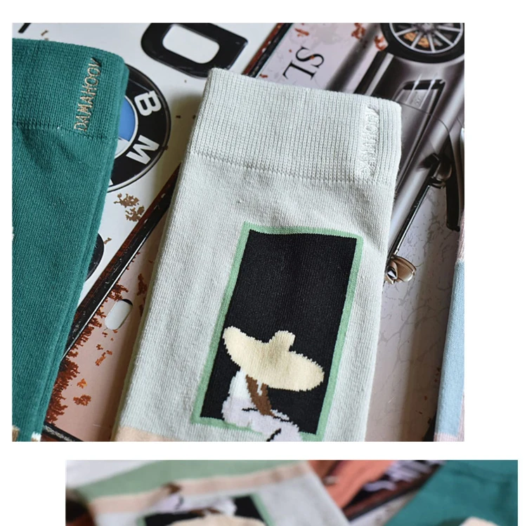 Новинка 2021 модные носки в Корейском стиле длинные хлопковые с принтом вышивкой