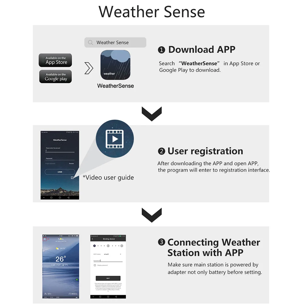 Легкое соединение между wather station и вашим смартфоном с установкой видео. Данные собираются из Интернета, более удобные и точные.