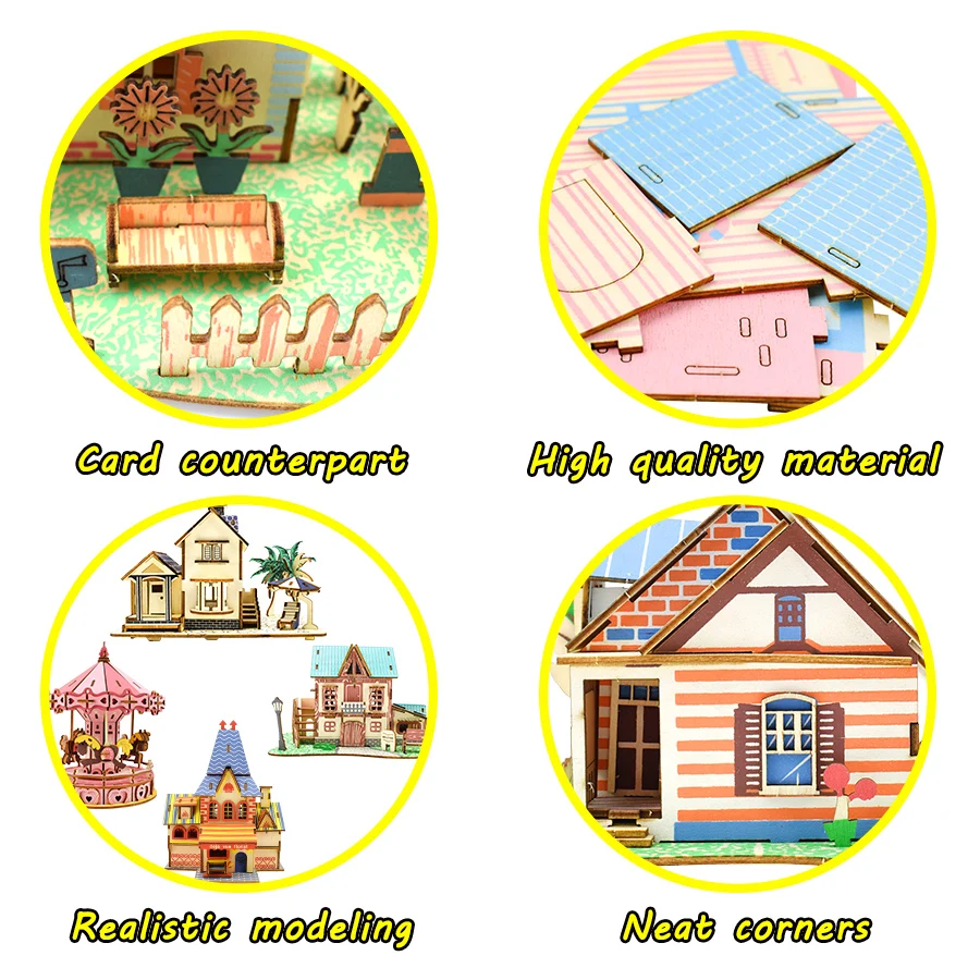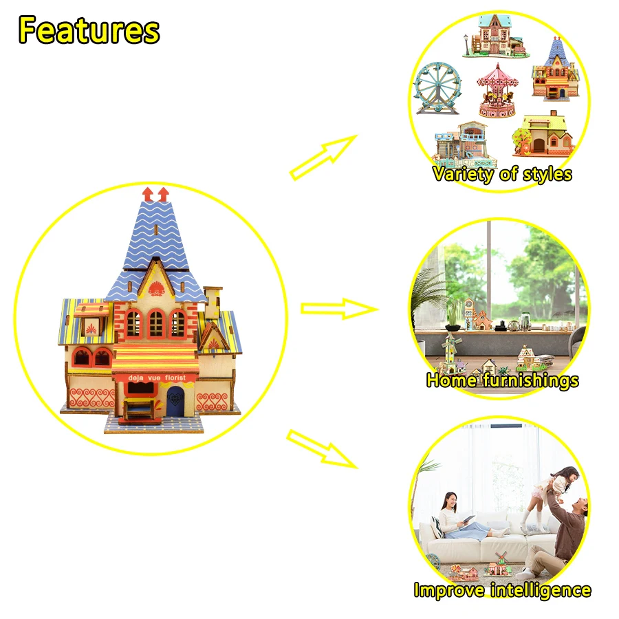 Цветочный 3D Деревянный пазл, игрушки, пазлы, архитектура, дом, сделай сам, ручная сборка, Детские пазлы, обучающая деревянная игрушка для детей, подарок