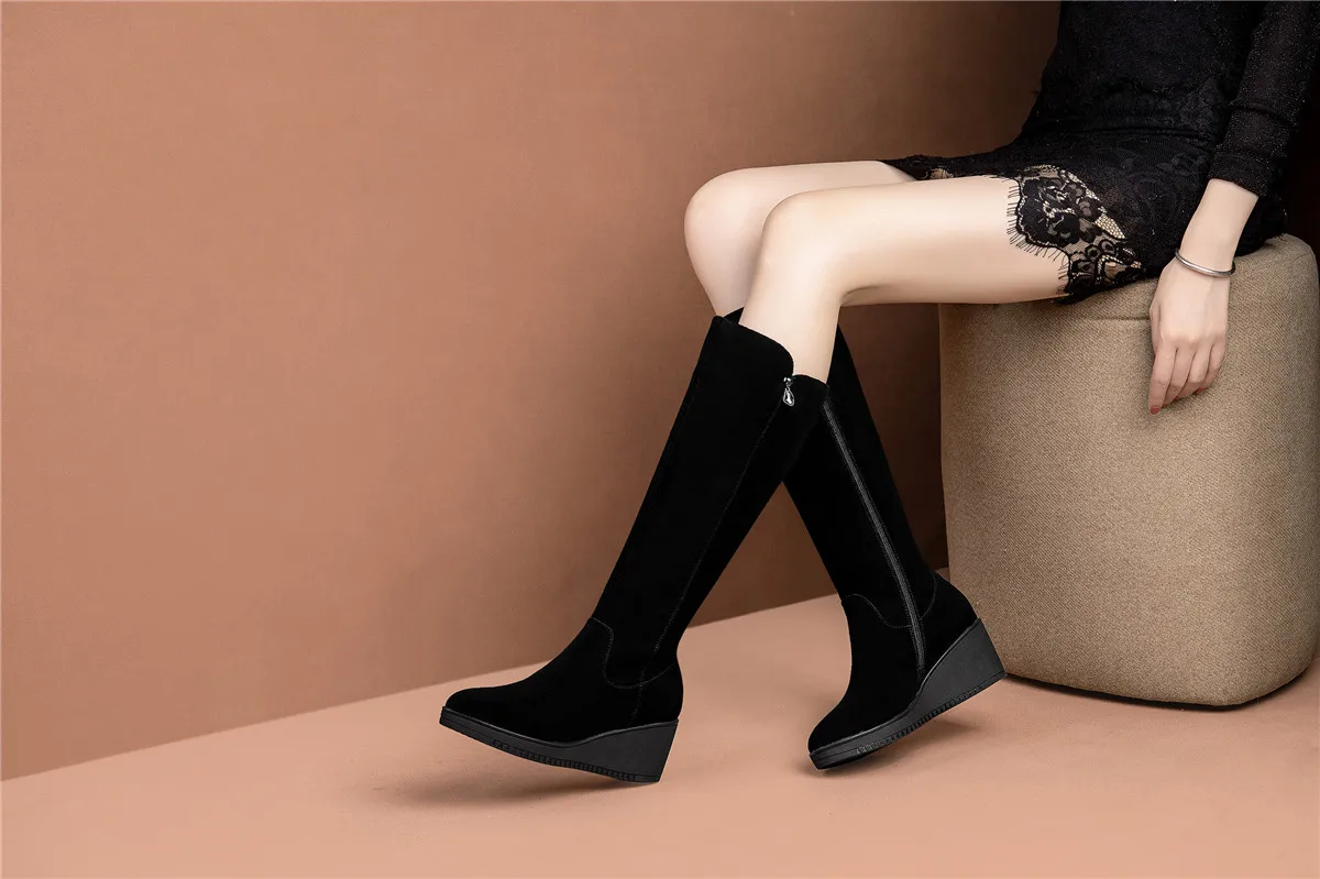 Модная и удобная обувь высокого качества Модные и популярные туфли Это очень популярный дизайн, мы уверены, что вам понравится Совершенно новый поставляется с коробкой На сезон с марта по август; из искусственной кожи внутри; на сезон с сентября по февраль с плюшевой подкладкой Каблук 6 см; Высота верха 38 см; Объем лодыжки 27 см; Объем теленка 36 см; Цвет: черный