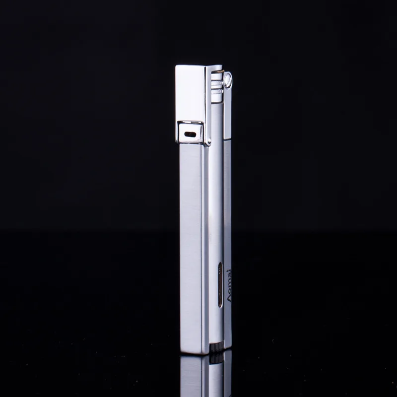 Струйный фонарь легче, чем газ-бутан турбо ультратонкая Зажигалка Ветрозащитная металлическая зажигалка для сигар длинный полосатый прозрачный топливный бак