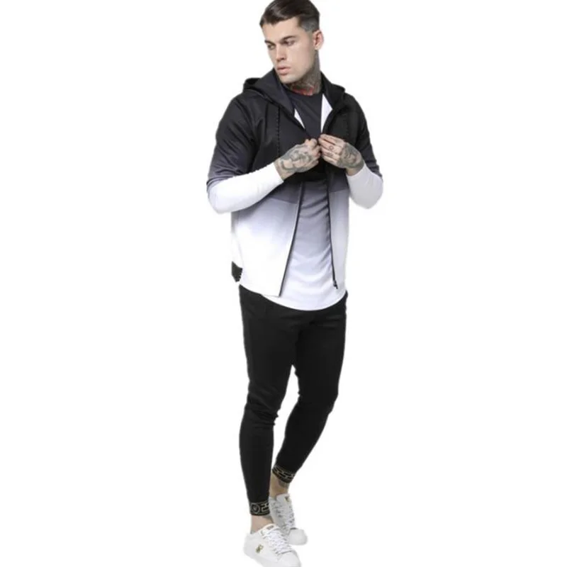 Мужская повседневная спортивная толстовка на молнии с 3D градиентом, модная черно-белая уличная одежда в стиле хип-хоп, модель 2020