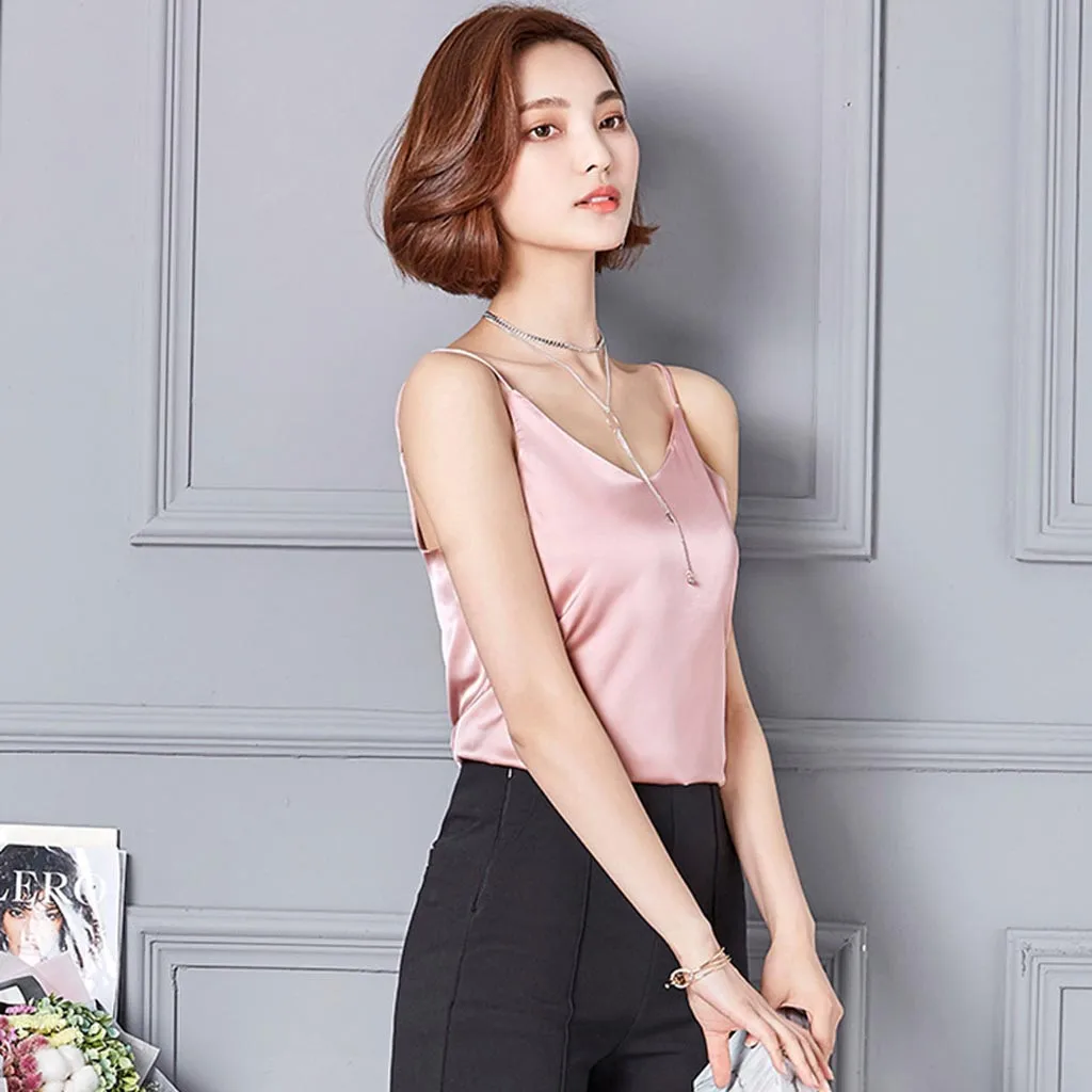 Женская сексуальная шелковая блузка, Мягкая атласная майка, укороченный топ