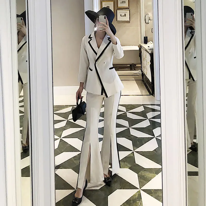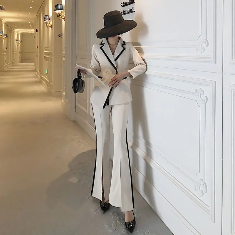 Модная зимняя официальная рабочая одежда женский элегантный брючный костюм