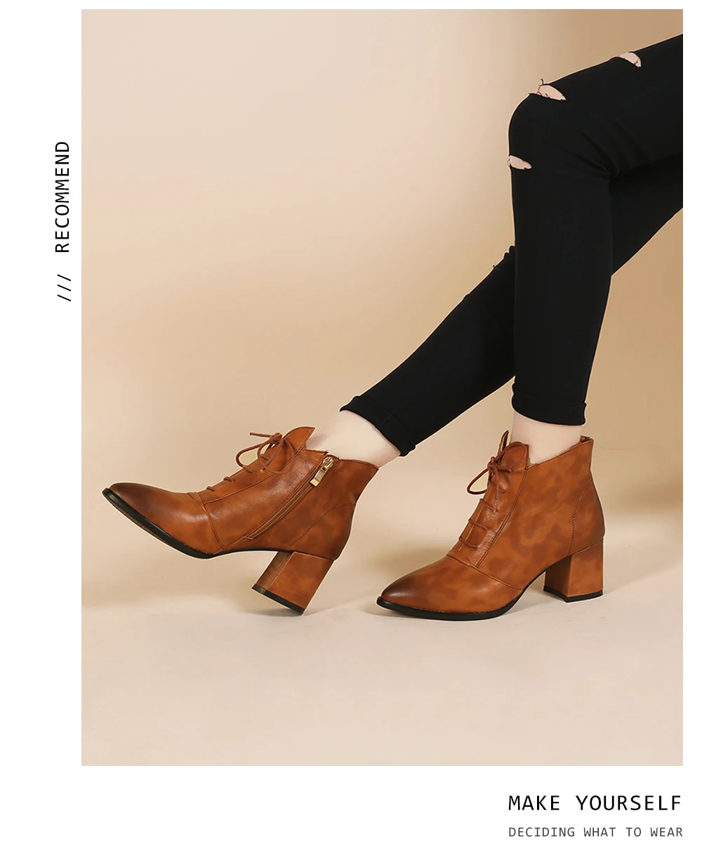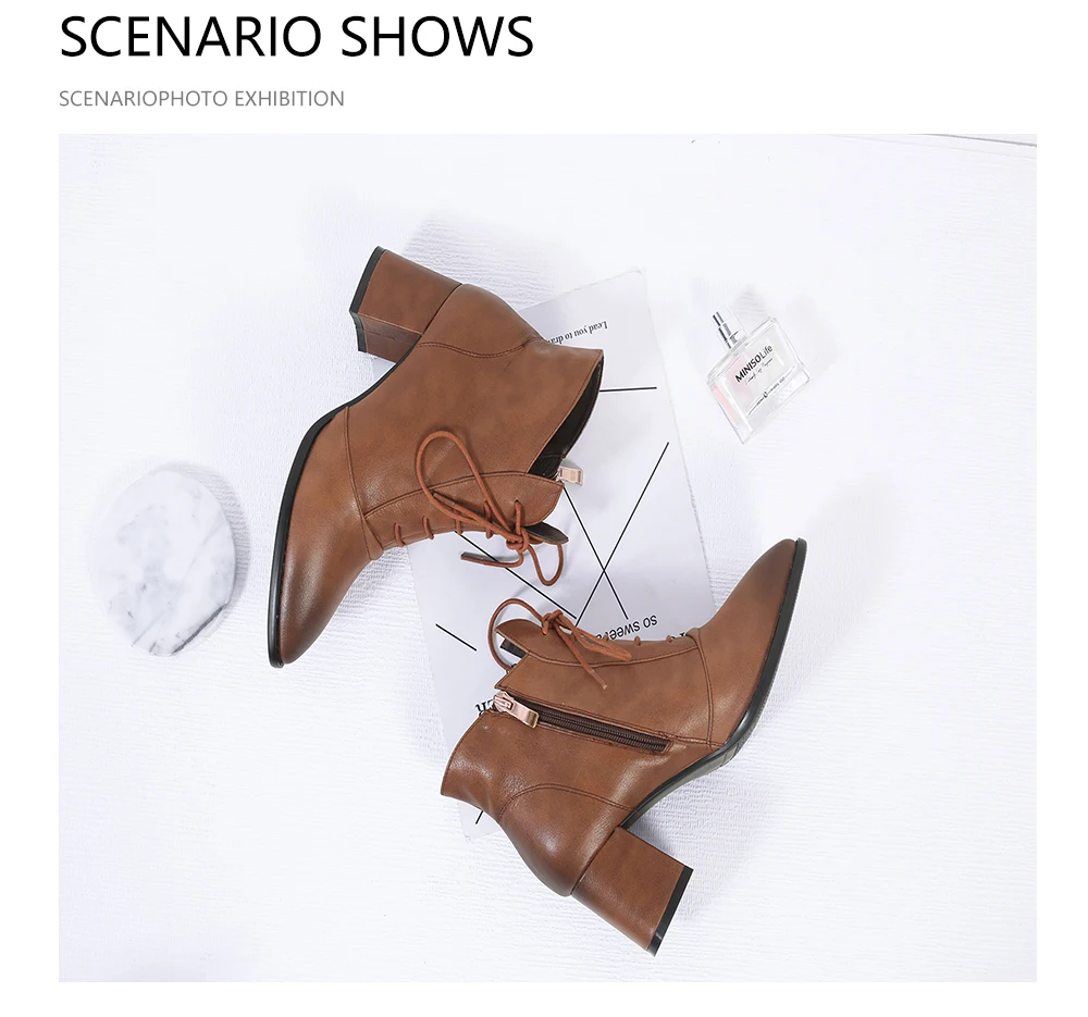 BESCONE/женские ботильоны; Высококачественная обувь из коровьей кожи на молнии с квадратным каблуком; Модные разноцветные женские ботинки с перекрестной шнуровкой; BM350