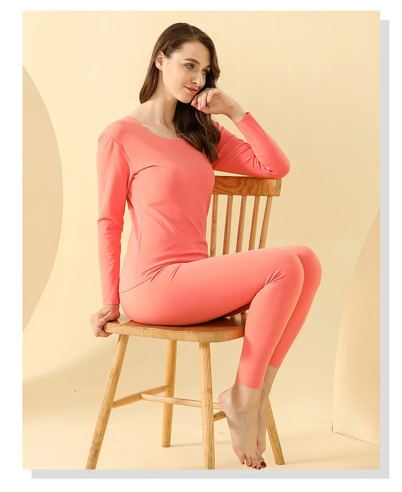 Комплект женского термобелья с круглым вырезом Мягкие Бесшовные облегающие