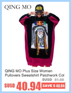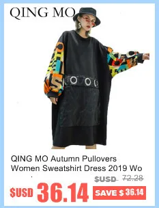 QING MO Черная Женская толстовка с капюшоном 2019 Женская Толстовка на шнурке
