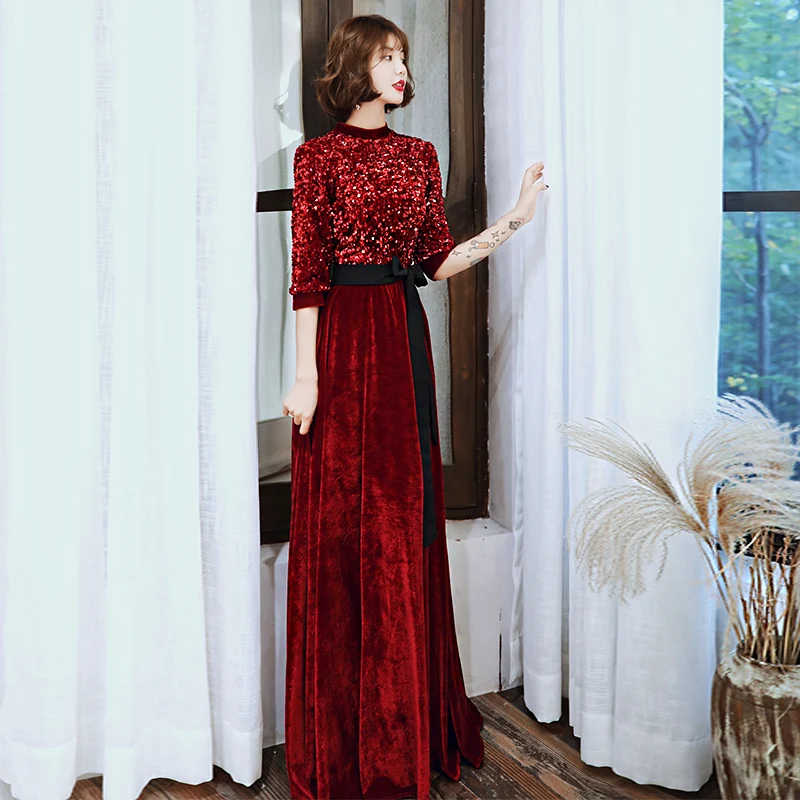 Женское вечернее платье до пола SSYFashion розовое с вырезом лодочкой и блестками