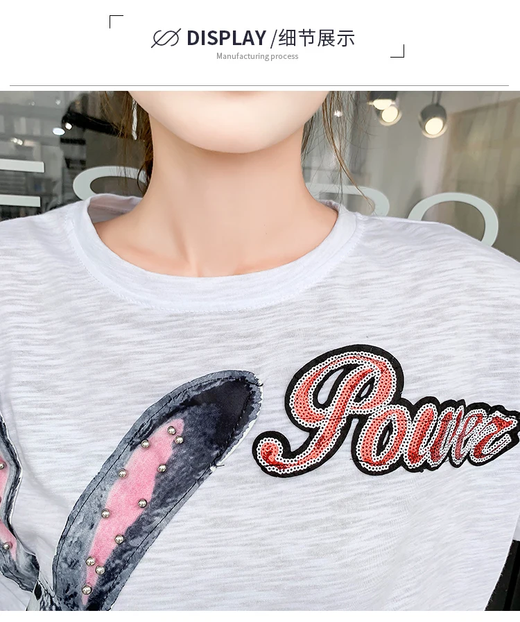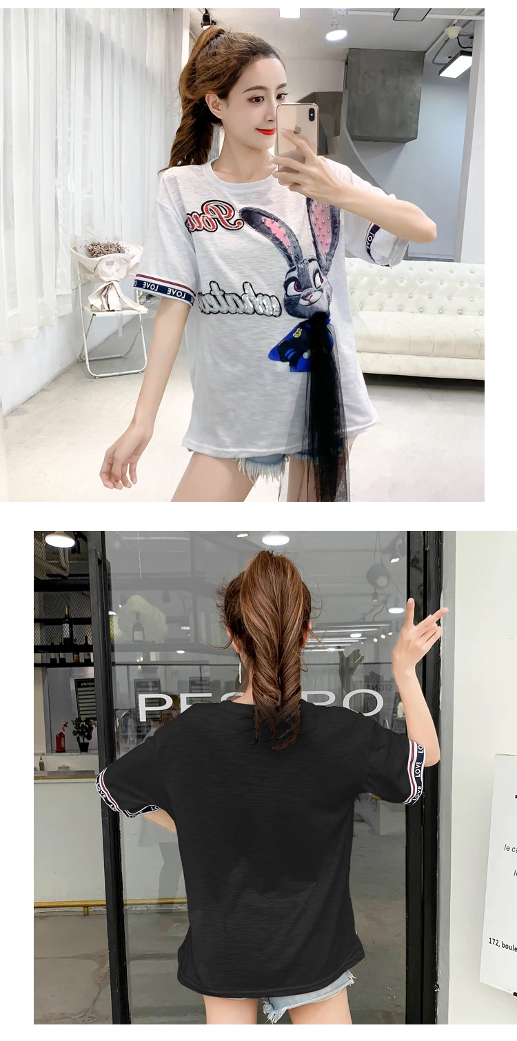 Женская футболка с коротким рукавом, летняя повседневная футболка с принтом кролика, женские топы в Корейском стиле