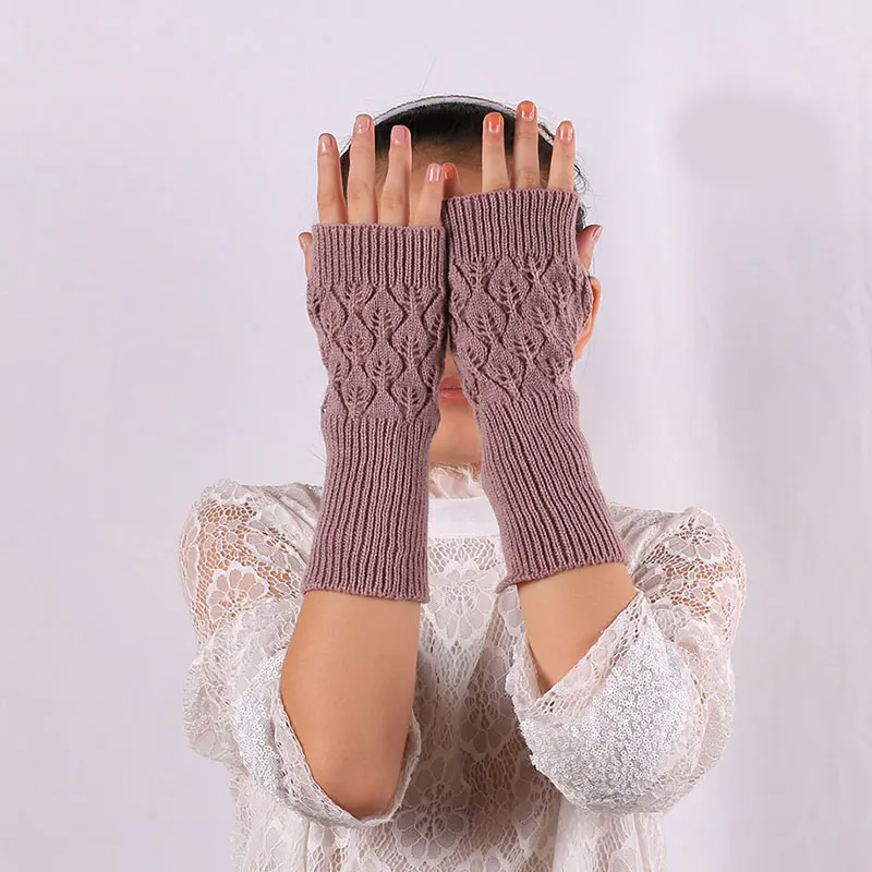 Осенне-зимние женские Полые перчатки, удлиненные рукавицы, полый лист, перчатки