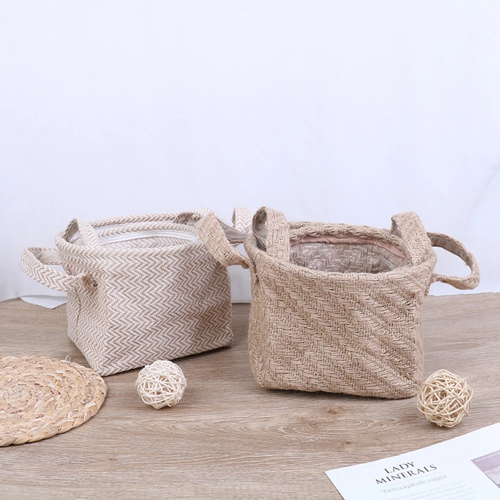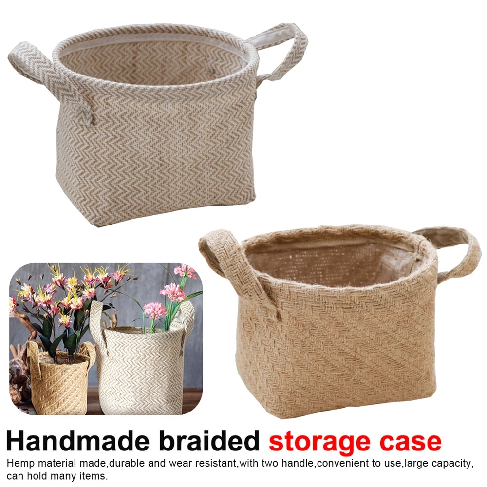 Плетеная Джутовая Ткань, корзина для хранения цветочных горшков, хлопковая льняная Смешанная настольная коробка для хранения, детские игрушки, органайзер, корзина для белья