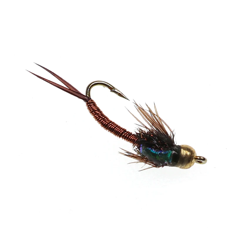 Vamfly 8 шт. #16 форель Nymphs для рыбалки медь John Beadhead камень для ловли форели приманка с шариковой головкой Nymph 14 мм коричневый