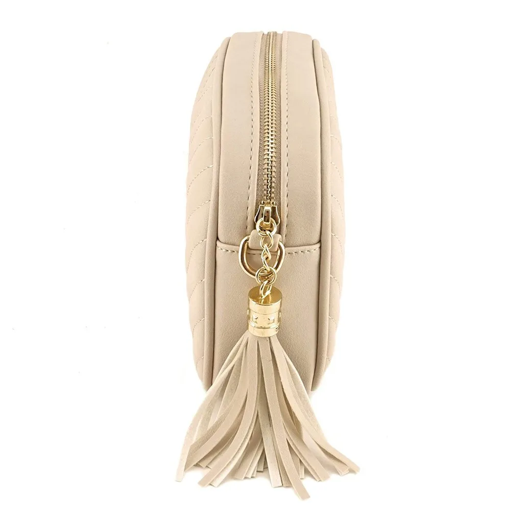 Fashion Women Solid Color Zipper Tassel HnadBag Shoulder Bag Messenger Bag