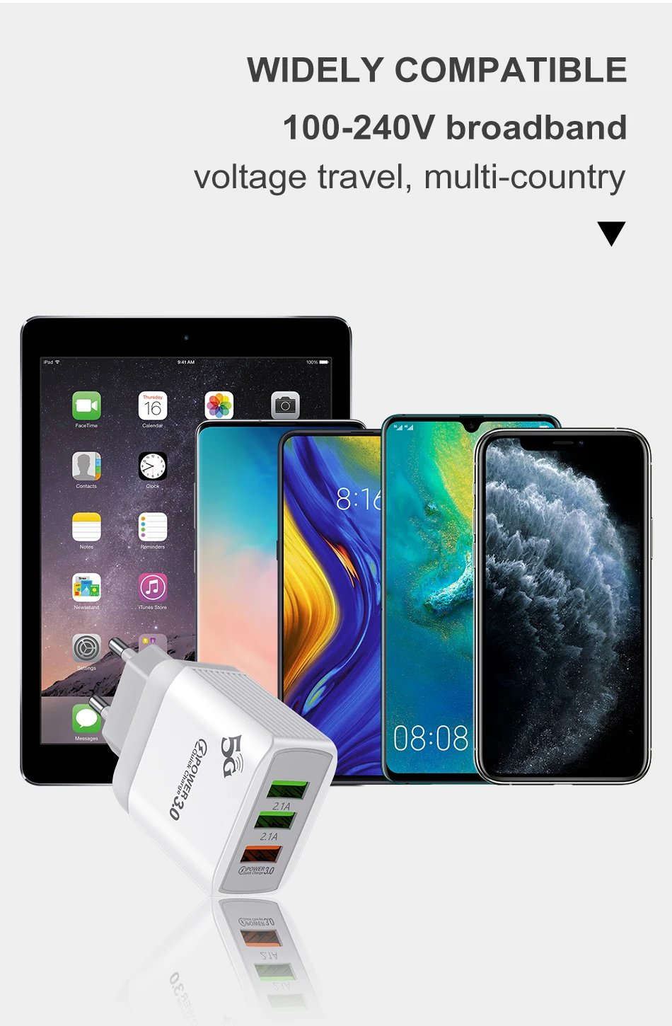 Зарядное устройство с 3 usb-портами USB интерфейс, мульти устройства могут заряжаться в одно и то же время.