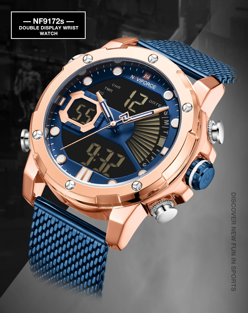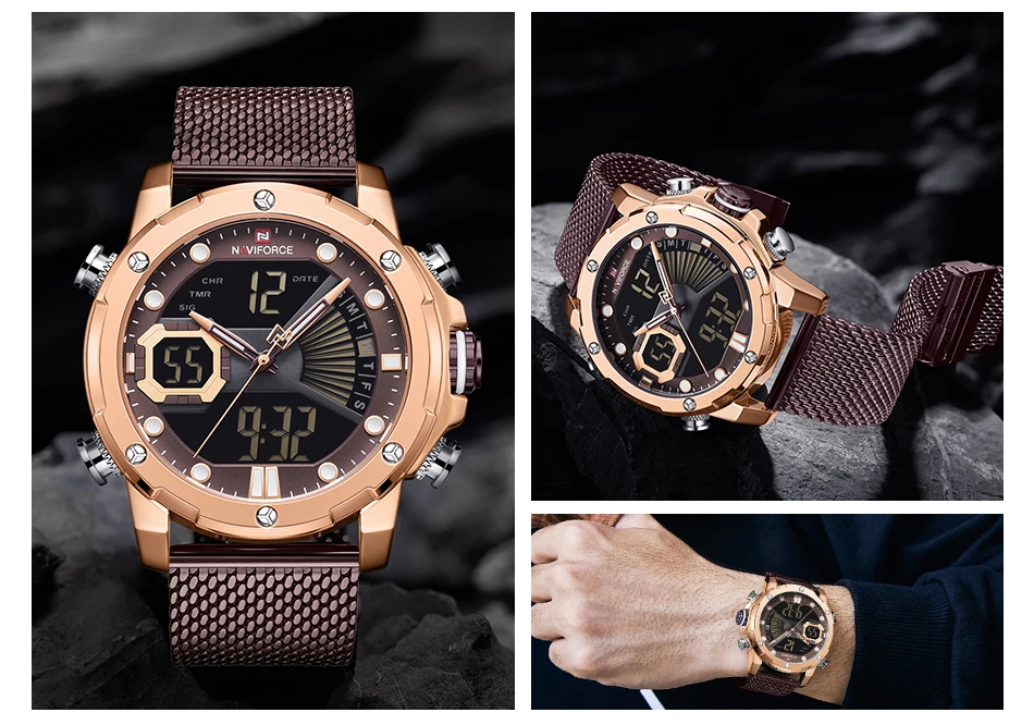 Naviforce часы мужские армейские военные мужские s наручные часы Цифровые кварцевые двойной дисплей спортивные часы мужские 30 м водонепроницаемые часы для альпинизма