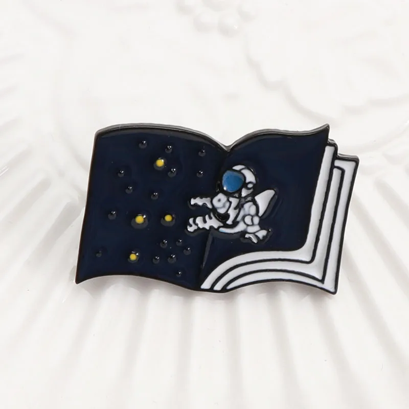 Космические путешествия в книге Эмаль Булавка звездное небо Броши с астронавтом значок булавки на лацканы одежда сумка космическая Вселенная подарок детям друзья