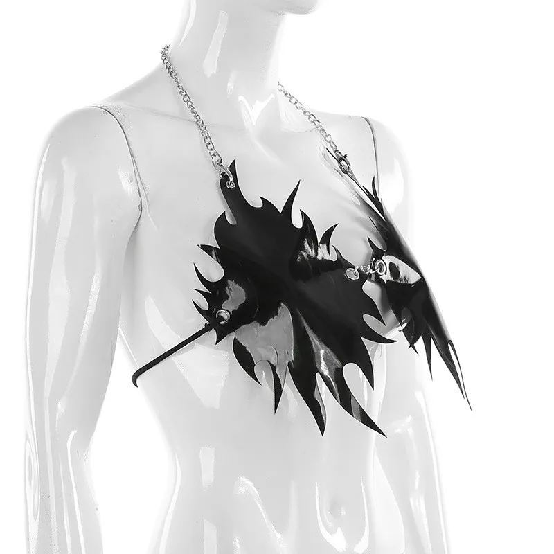 Женский бюстгальтер с бретелькой через шею, бюстгальтер-бюстье из искусственной кожи, Клубная одежда, женские короткие топы с глубоким v-образным вырезом и цепочкой, лоскутный жилет на бретелях