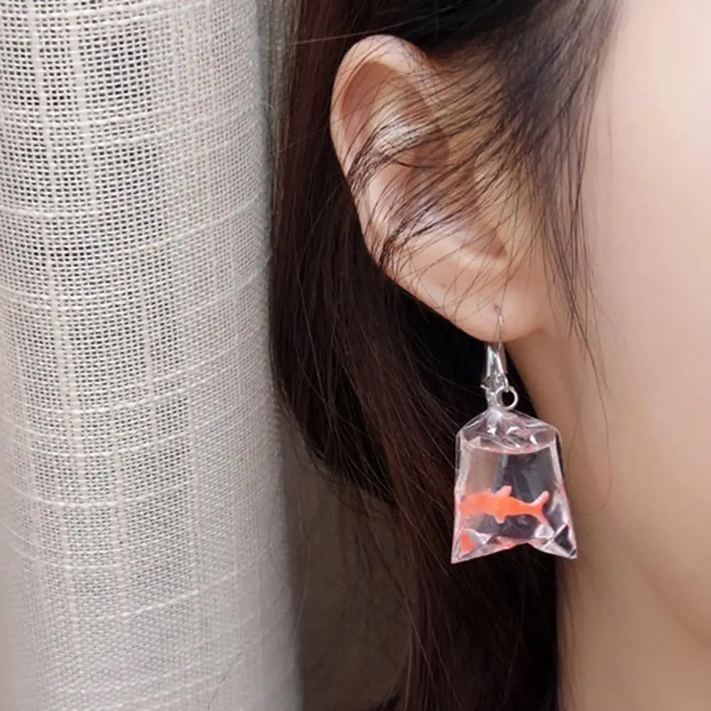 Особенности: дизайн золотой рыбки, дизайн водяного мешка, висячие серьги, забавные ювелирные изделия