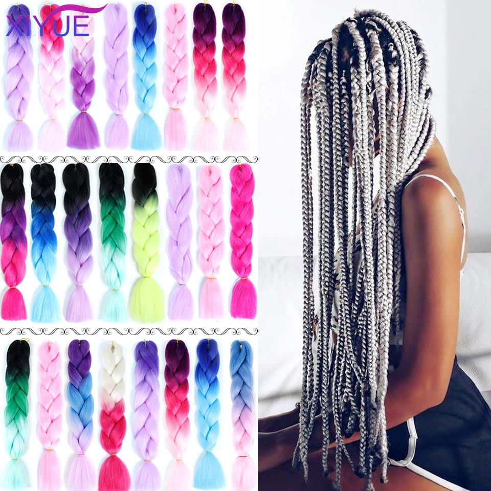 Kanekalon Джамбо синтетические плетеные волосы Омбре удлинители волос Радужная