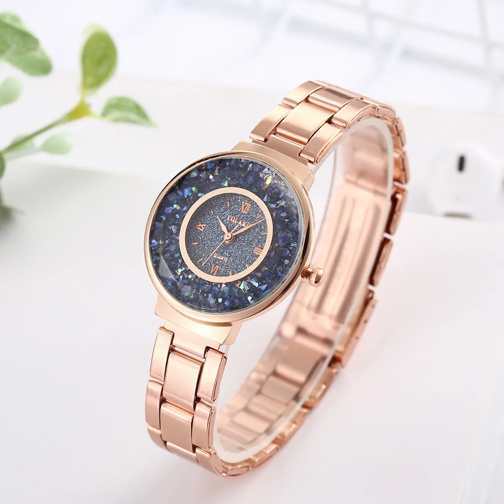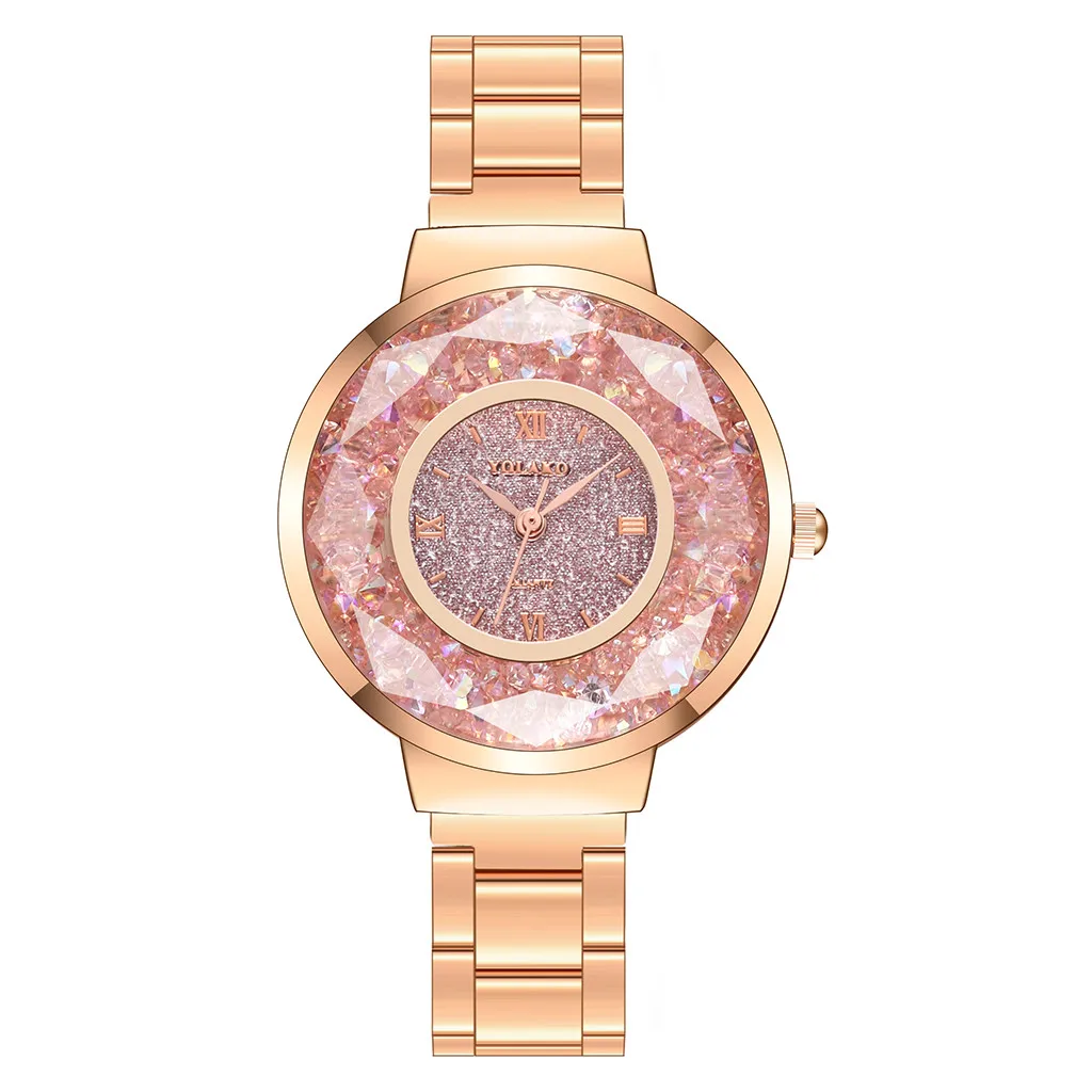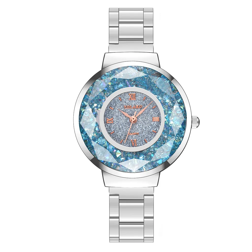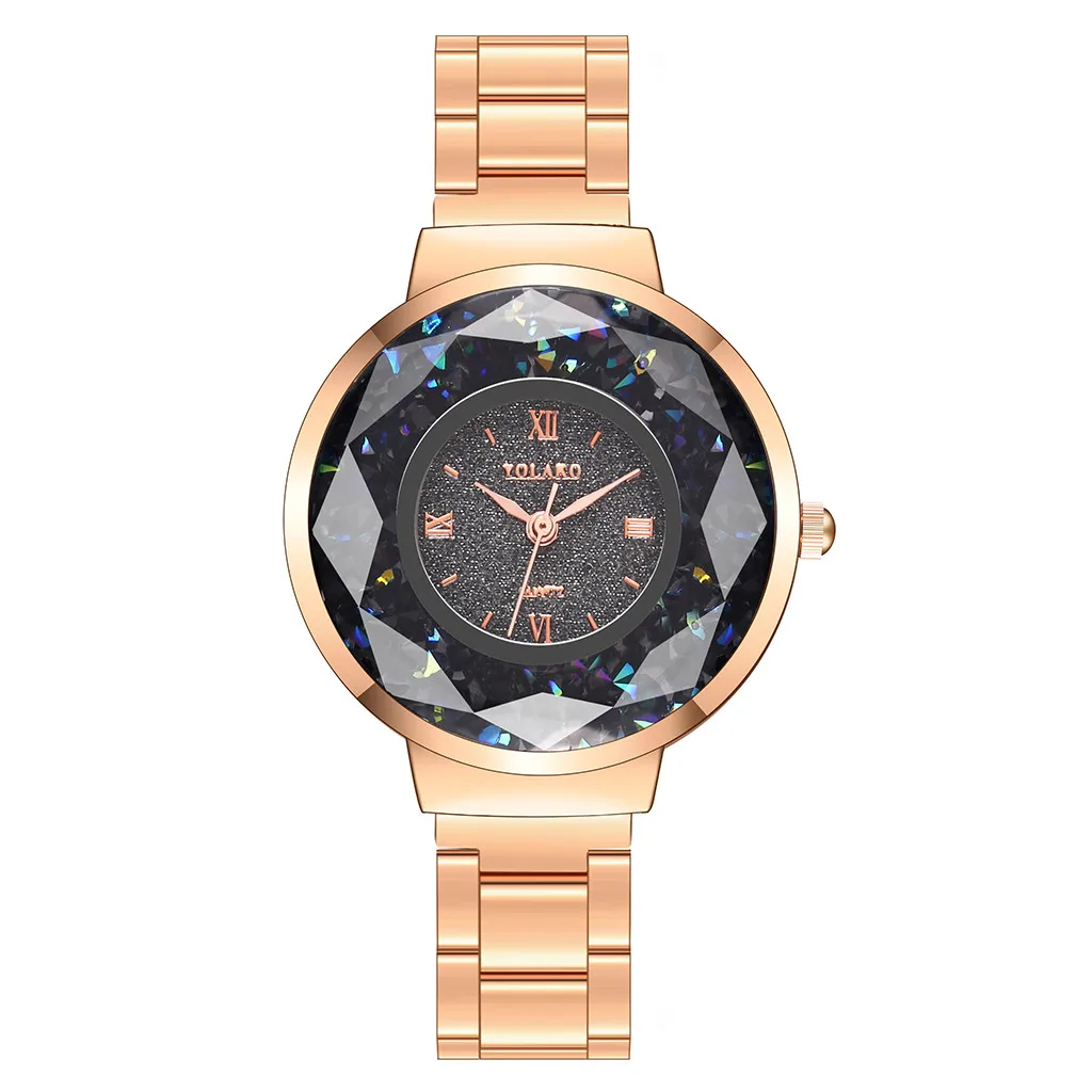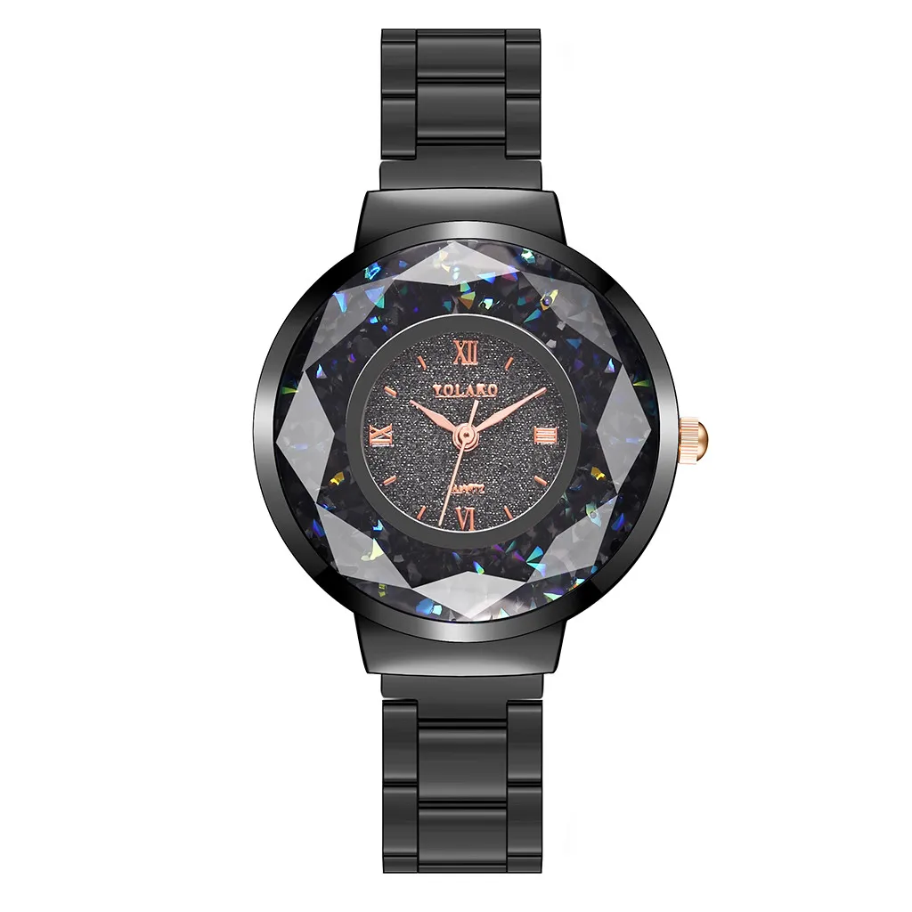 YOLAKO женские часы, повседневные кварцевые часы из нержавеющей стали, Звездный бриллиантовый циферблат, женские наручные часы, часы женские reloj mujer