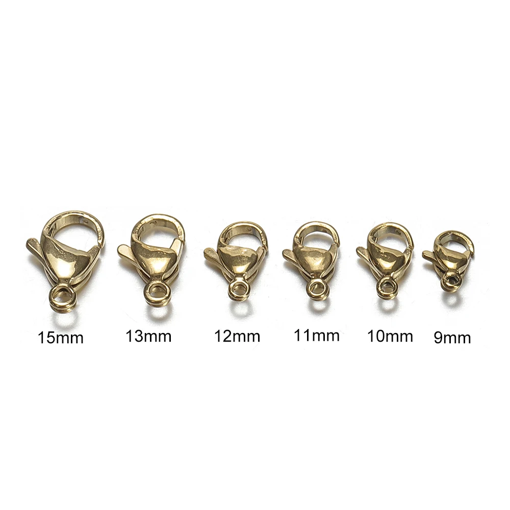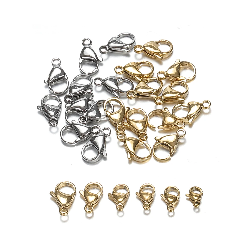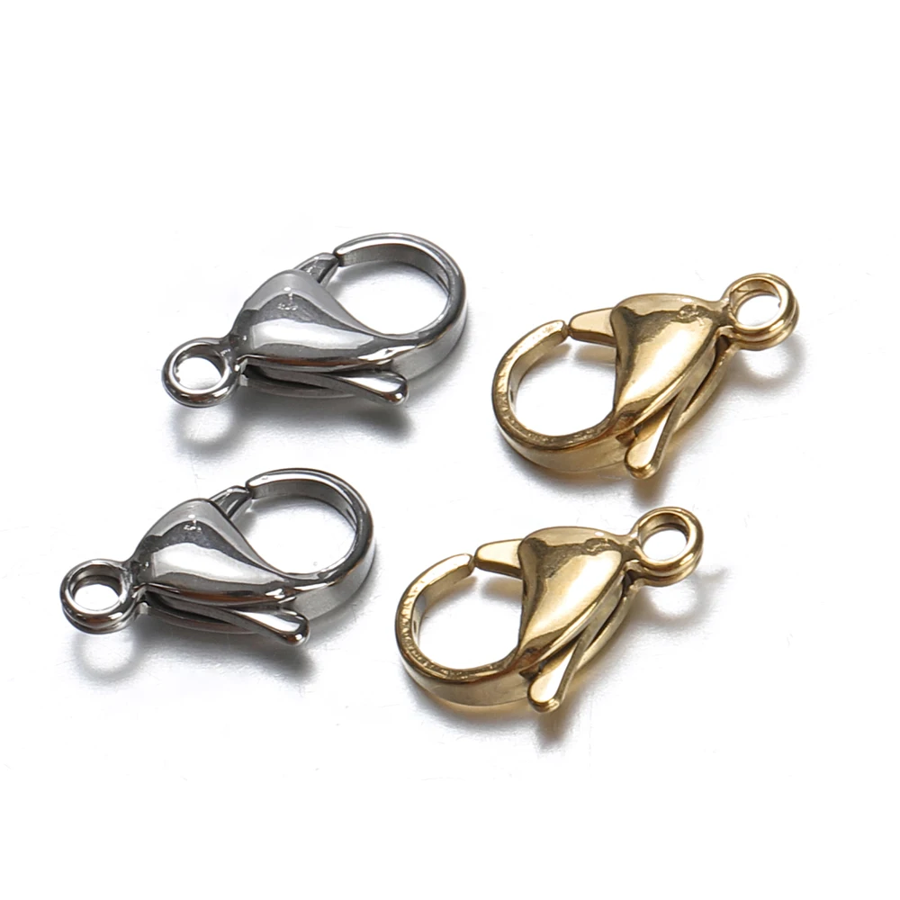 Застежка-лобстер из нержавеющей стали, ювелирная фурнитура, золотая застежка, крючок для Diy, ожерелья и браслетов, изготовление цепочки 9/10/11/12/13/15 мм