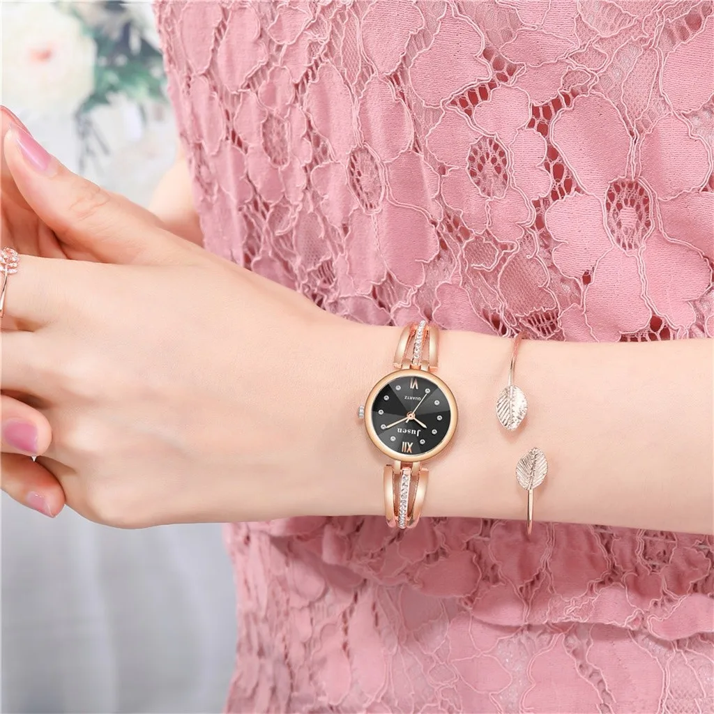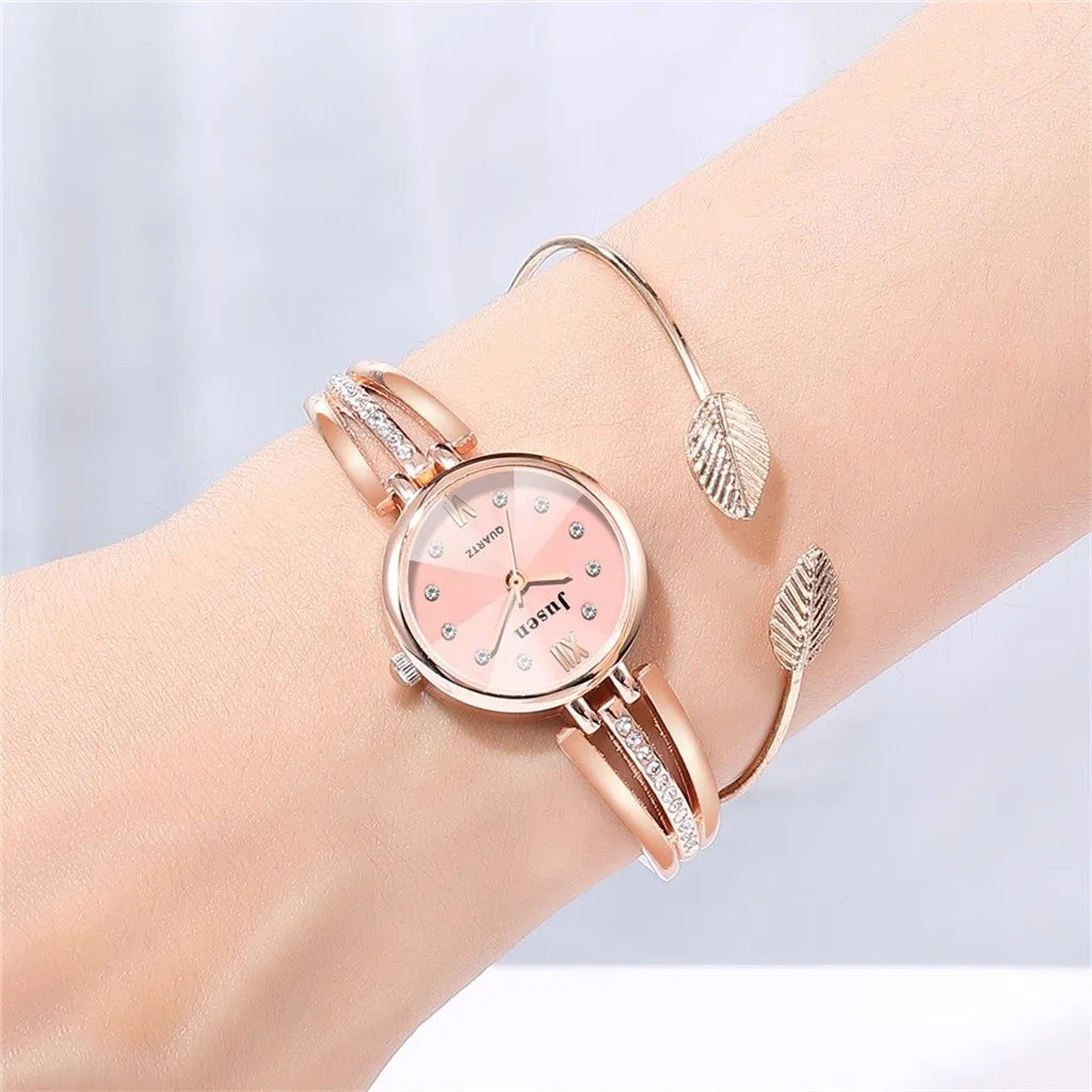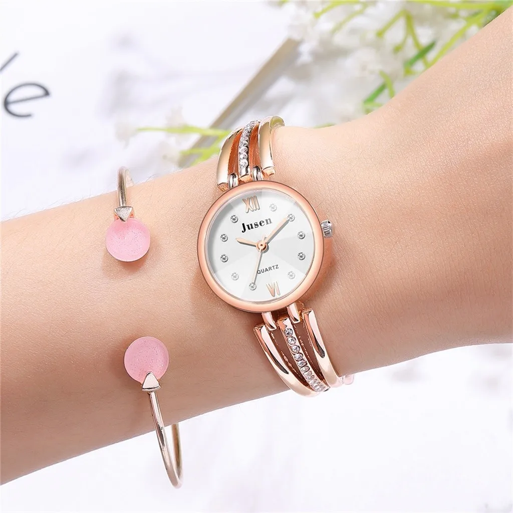 Модные Простые инкрустированные часы-браслет из сплава, женские кварцевые часы в подарок