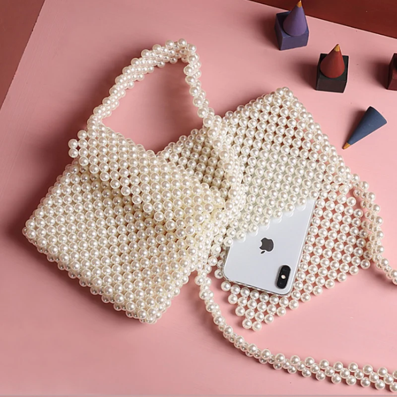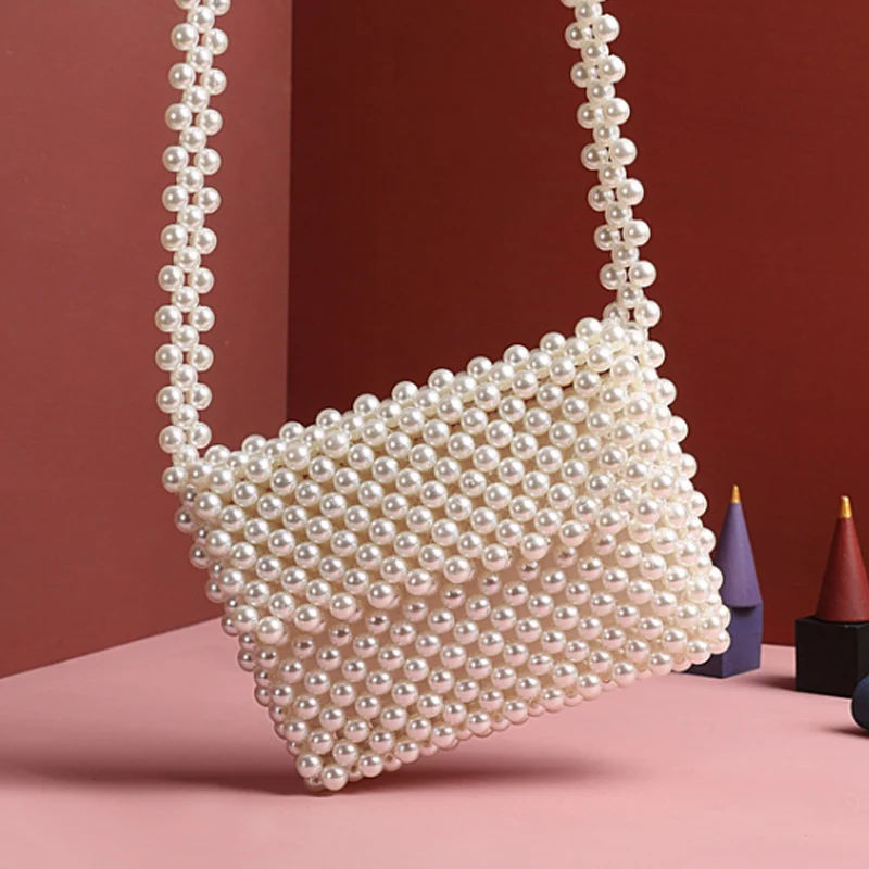 Новая соломенная сумка с жемчугом портативная плетеная вручную бусинами женские