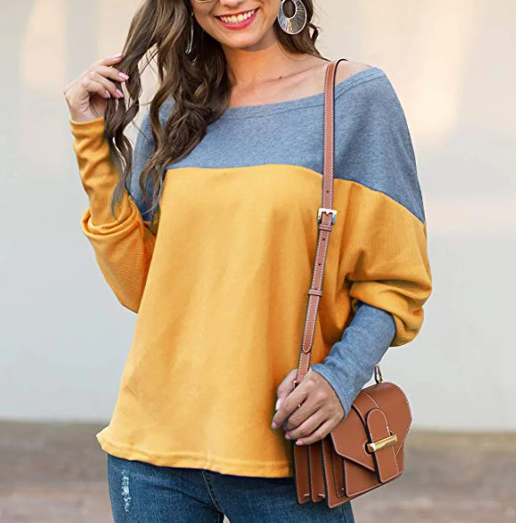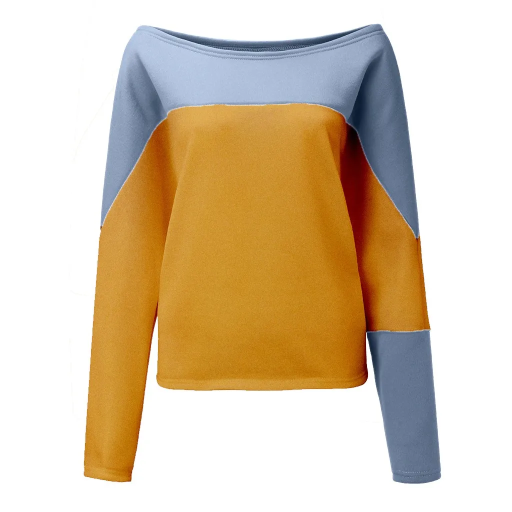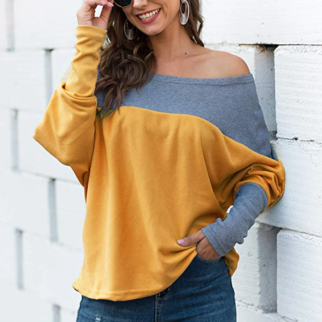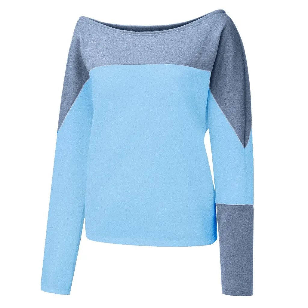 Женская мода сшивание косой воротник рукав летучая мышь Длинный Рукав Толстовка Топ