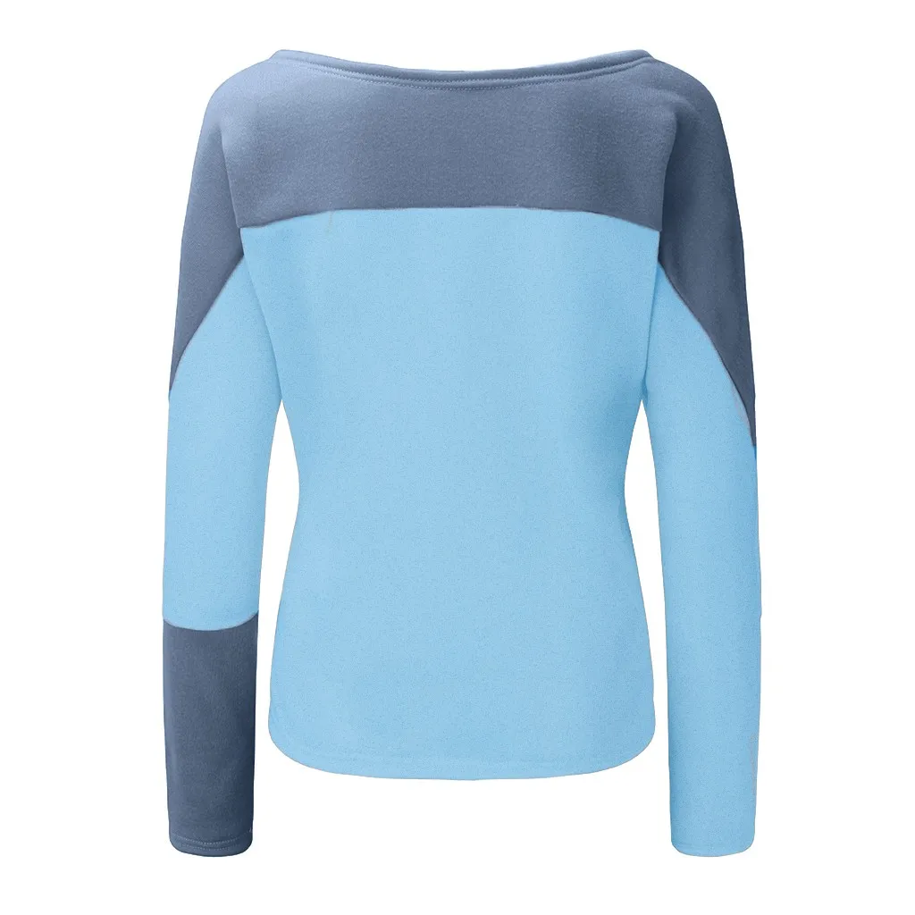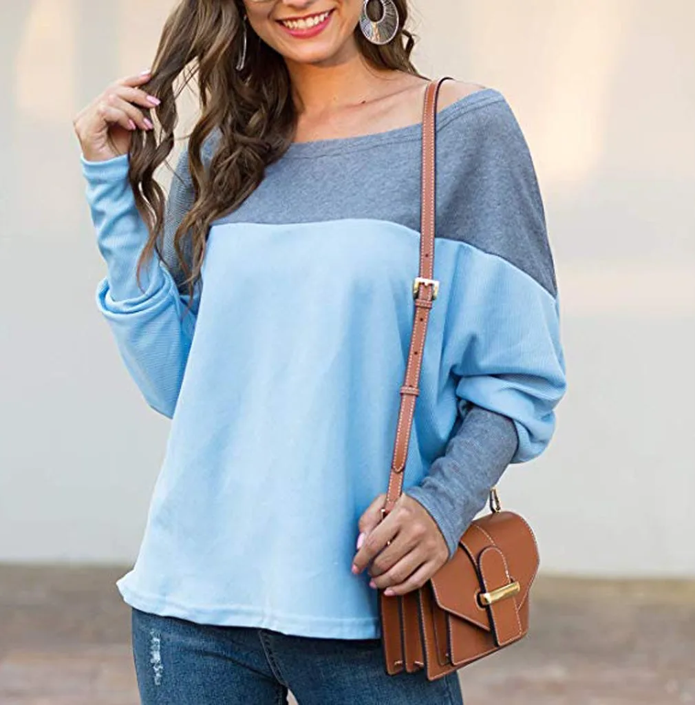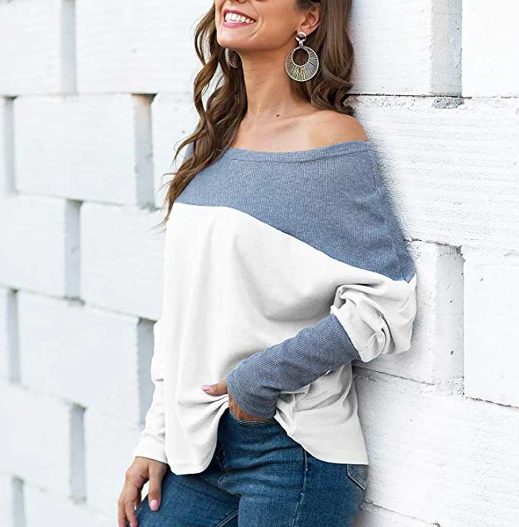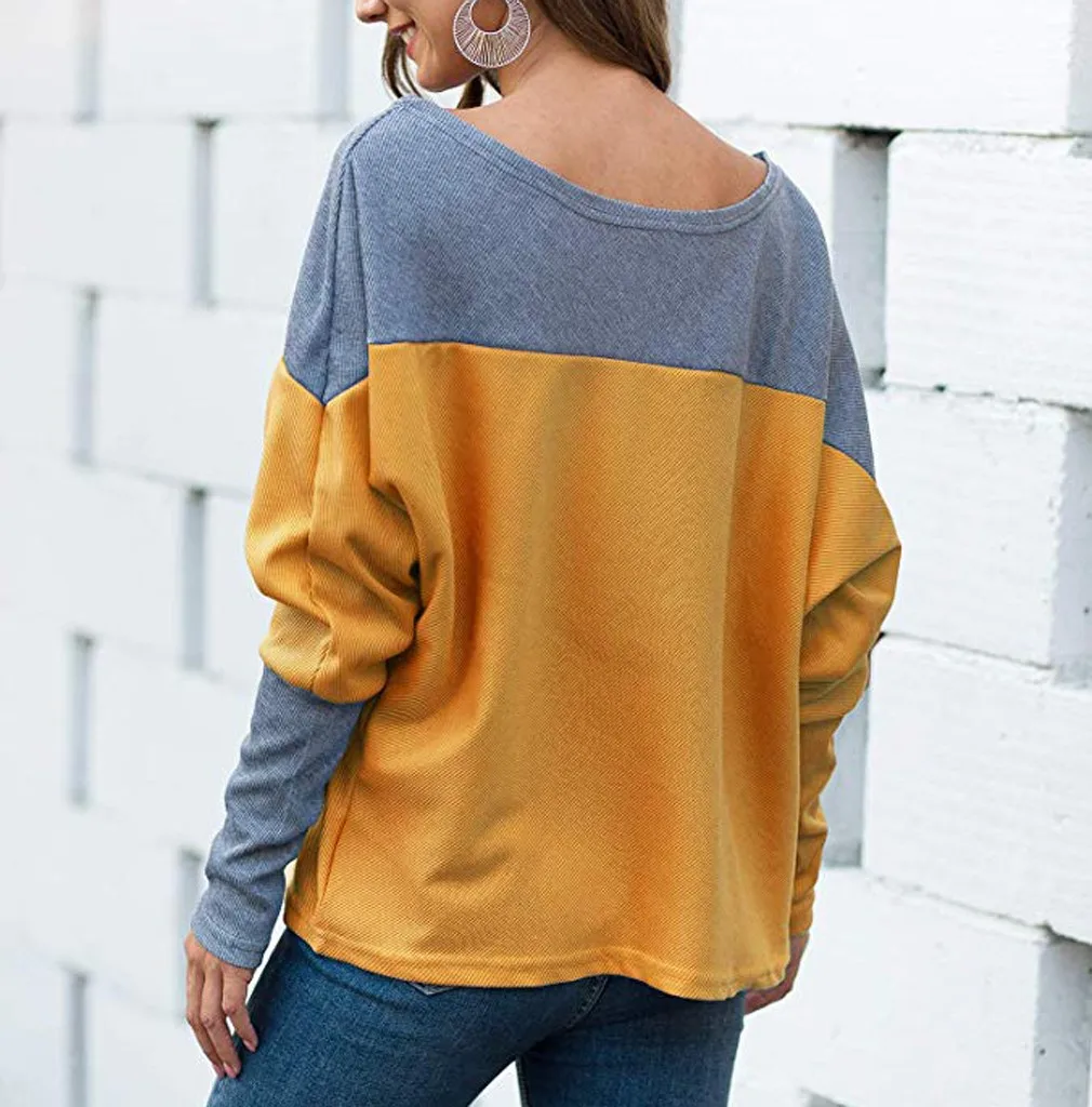 Женская мода сшивание косой воротник рукав летучая мышь Длинный Рукав Толстовка Топ