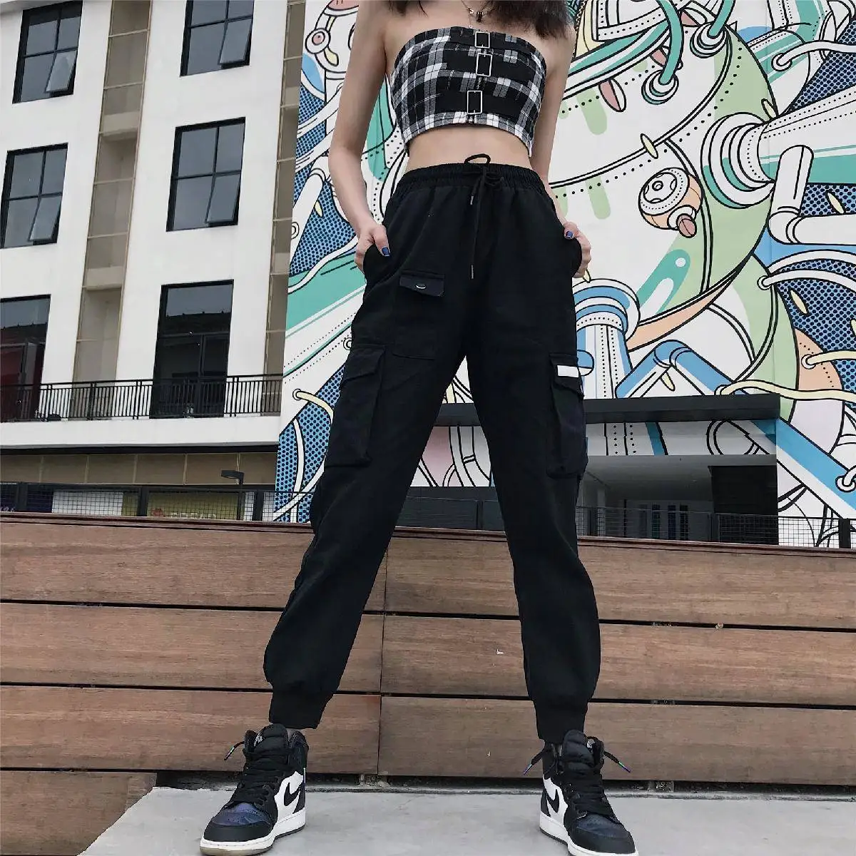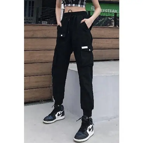 2019 INS, Япония, пряжки, ленты, карманы, джоггеры, брюки-шаровары, уличная одежда, для женщин, осень, хип-хоп, повседневные спортивные штаны, женские штаны