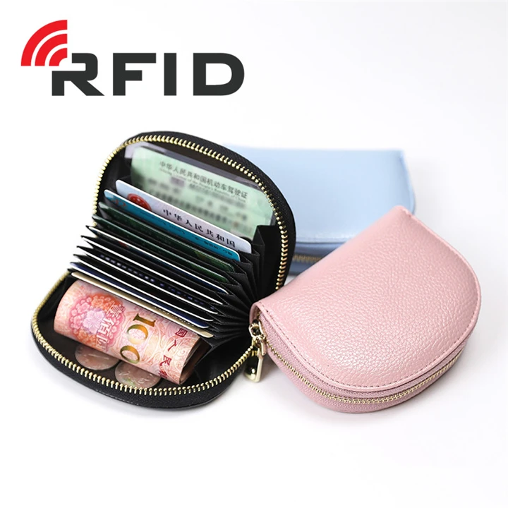 Визитница красный/синий/черный/розовый/фиолетовый с защитой от RFID-считывания кредитных карт кошелек для женщин из искусственной кожи для женщин кошелек сумка на молнии