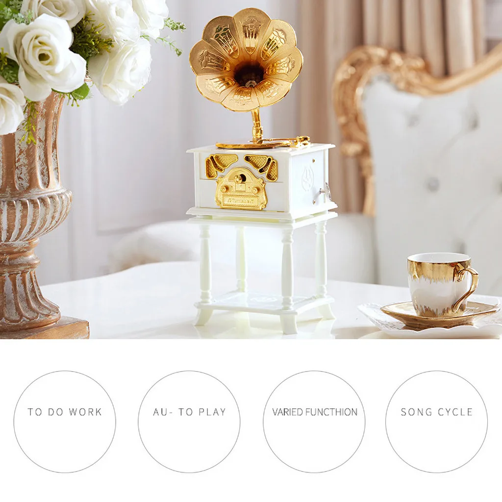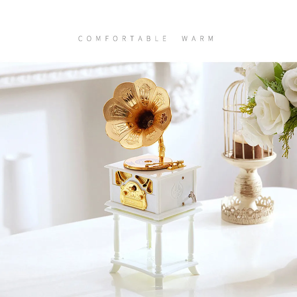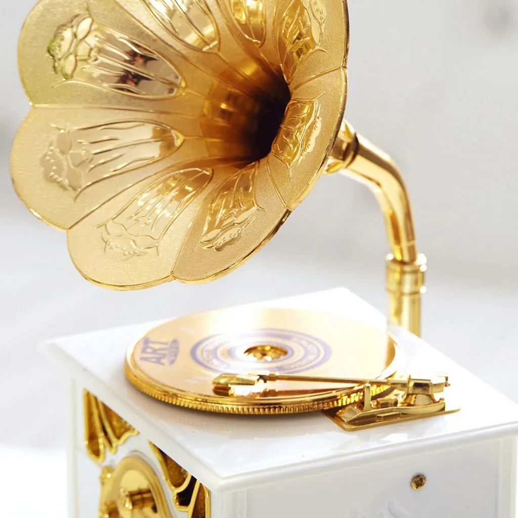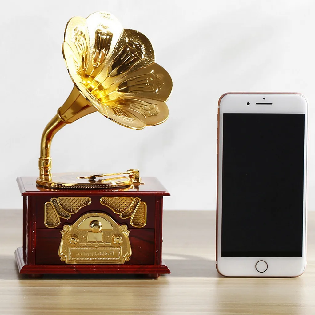 Старинная музыкальная шкатулка металлический фонограф рукоятка музыкальные коробки креативная классическая музыкальная шкатулка декор Классический вращающийся Музыкальный Чехол подарок