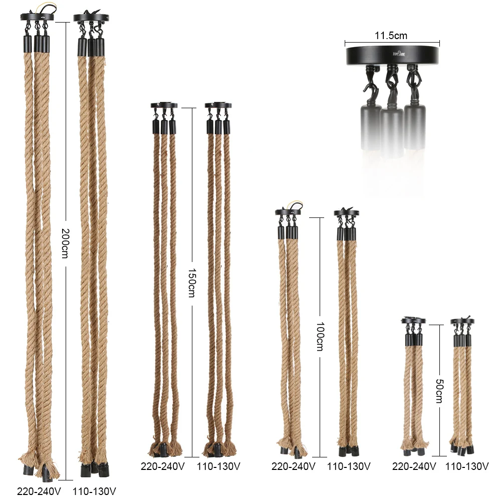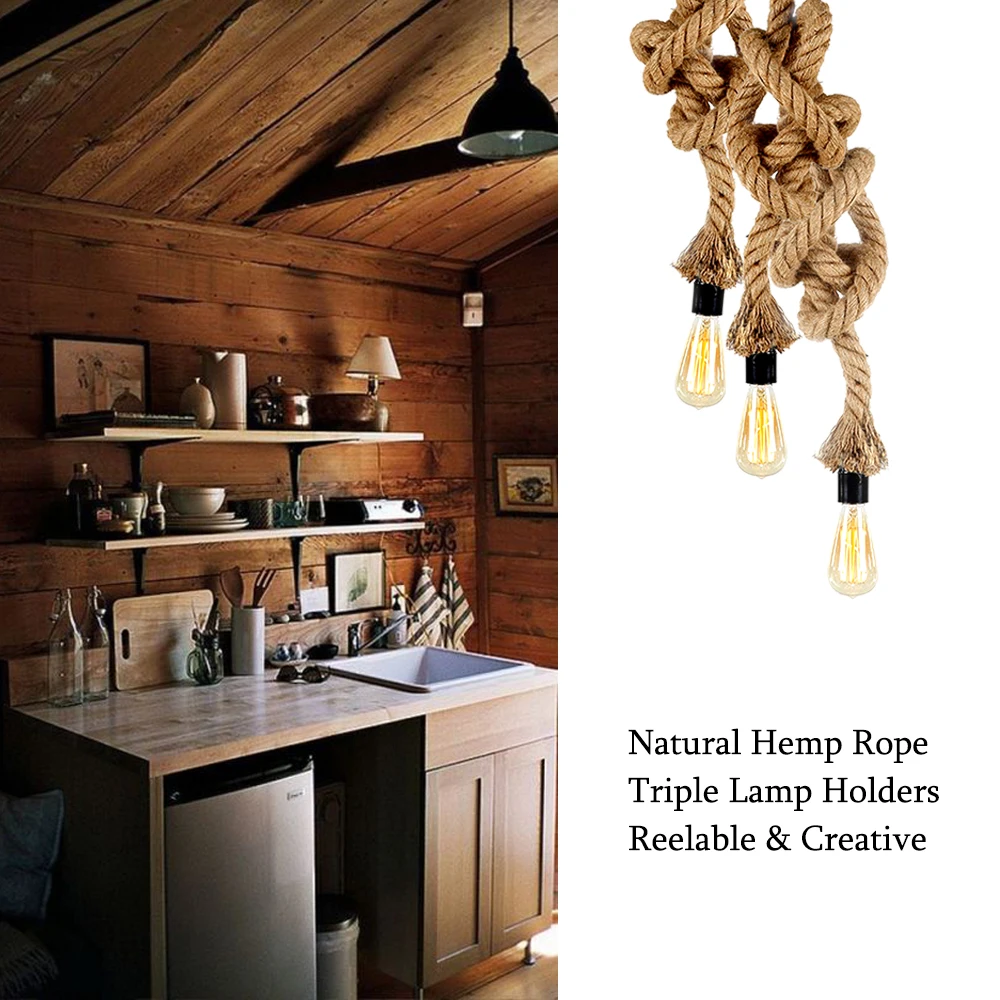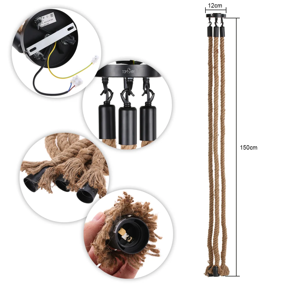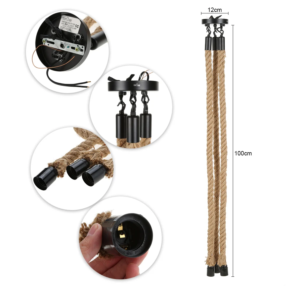 Подвесная лампа с 3 держателями E27 (лампы не предусмотрены) изготовлена из натуральных пеньковых канатов. Вы можете связать его в различные творческие узлы или намотать его вокруг палки. Декорирование своими руками, вы можете легко иметь комнату в винтажном стиле и никогда не идентичны.